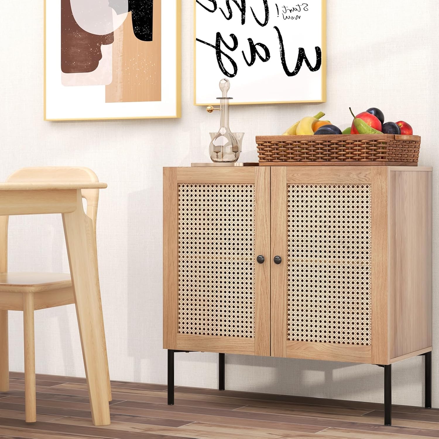 FANTASK Sideboard Mit Rattan Türen - Stilvoller Buffetschrank Für Küche & Wohnzimmer