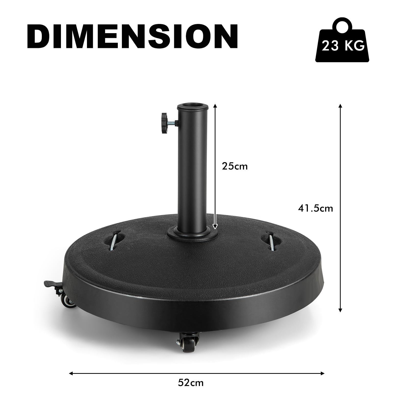 Maße: 52cm Durchmesser, 43,5cm hoch - die perfekte Größe für Terrasse, Garten oder Balkon. Kein Befüllen mit Sand oder Wasser nötig!
