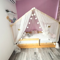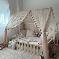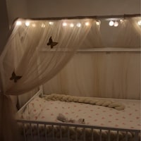 Verwandle das Zimmer deiner kleinen Prinzessin in ein Märchenschloss! Dieser wunderschöne Betthimmel mit Regenbogen-Batik-Design bringt magische Stimmung ins Kinderzimmer. Mit 482,6x160 cm Größe passt er perfekt über jedes Doppelbett. Aus hochwertigem Tüll gefertigt, fühlt sich weich an und sieht einfach traumhaft aus. Die mitgelieferten Lichter sorgen für gemütliches Licht - aber bitte nie unbeaufsichtigt lassen! Der Himmel gibt Sicherheit, hilft bei Angst vor der Dunkelheit und fördert die Selbstständigkeit. Einfach aufhängen und staunen, wie sich der Raum verwandelt!