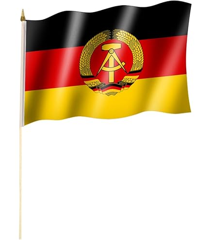 Eine klassische DDR Flagge in Top-Qualität! Maße 40x60 cm, aus robustem 110g/m2 Polyester-Gewirke. Komplett hissfertig mit Gurtband, Strick und Strickschlaufe. Besonders wetterfest - hält auch bei Wind und Wetter stand. Farben sind wasser-, licht- und sonnenecht, verblassen nicht. Deutsche Qualitätsware die lange hält. Perfekt für Boote, Balkone oder als Deko-Stück. Auf Wunsch kann auch jede andere Hissvorrichtung angebracht werden. Ein Stück Zeitgeschichte in bester Verarbeitung!