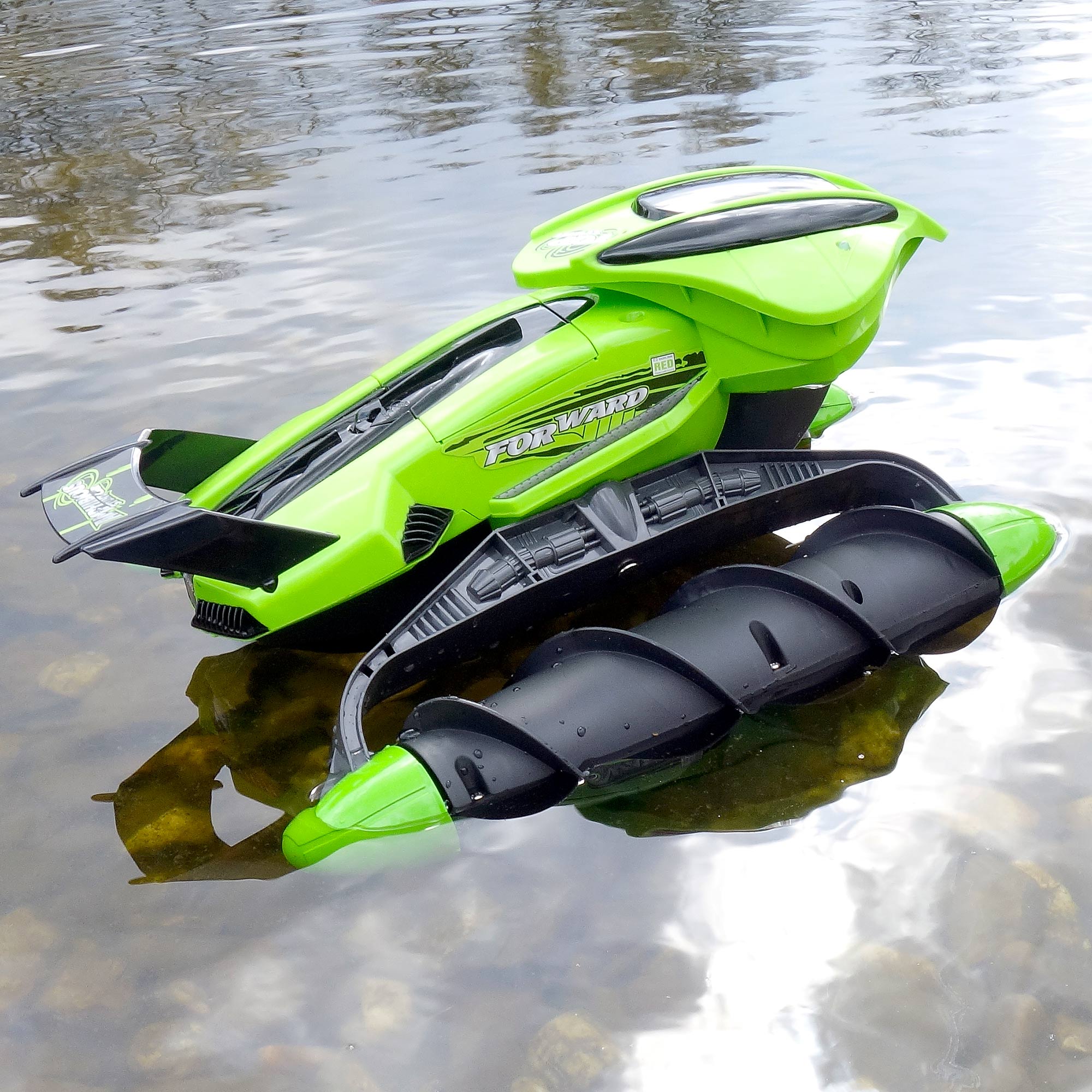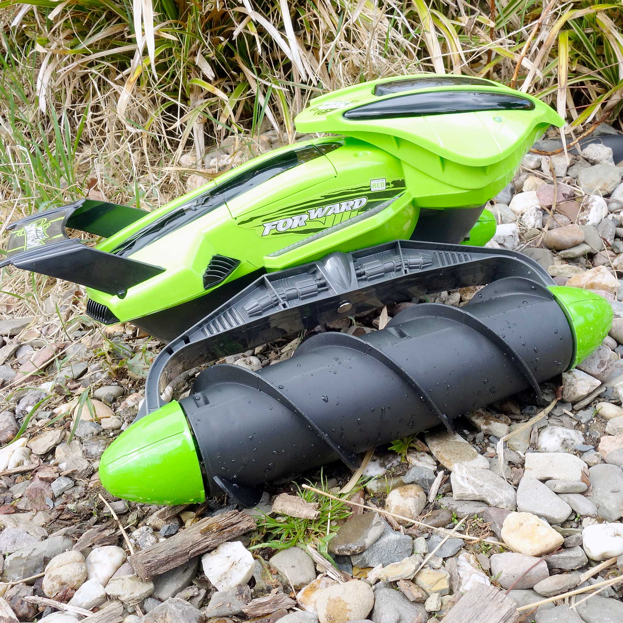 Abenteuer auf Land und Wasser! Dieses geniale Amphibien-RC-Auto meistert nicht nur jedes Gelände, sondern fährt auch schwimmend über Teiche und Pools. Mit 8 angetriebenen Rädern erklimmt es mühelos Steigungen und durchpflügt Sand, Schlamm und Gras. Die 2,4GHz Fernsteuerung ermöglicht präzises Steuern vorwärts, rückwärts und sogar 360° Drehungen. Mit 2 wiederaufladbaren 900mAh Akkus und USB-Ladekabel ist der Spielspaß garantiert lang - einfach Akku wechseln und weiter geht's! Im Set inklusive Schraubendreher für wasserdichten Verschluss. Die perfekte Überraschung für Kinder ab 4 Jahren - ob zu Weihnachten, Geburtstag oder einfach so. Tauche ein in spannende Abenteuer!