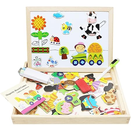 FERRGIA 135-teiliges Magnetisches Holzpuzzle - Doppelseitiges Zeichenbrett Für Kinder Ab 3 Jahren