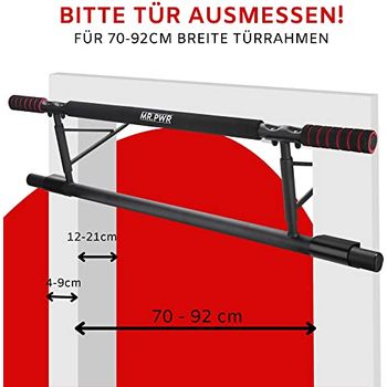Trainiere wie ein Profi - ganz ohne Gym! Diese FITEM Klimmzugstange montierst du einfach in deinen Türrahmen oder zwischen zwei Wänden. Verstellbar von 60-100cm, passt in fast jede Standard-Tür. Einfache Installation ohne Bohren: Enden rausschrauben, einklemmen, Mittelteil drehen - fertig! Hält bis zu 130kg aus. Trainiere Arme, Brust, Rücken und Bauch mit einem Gerät. Die griffigen Schaumstoffmanschetten schonen deine Hände. Mit nur 1,5kg leicht zu transportieren und überall einsetzbar. Perfekt für Home-Workouts, ob Anfänger oder Fortgeschrittener. Dein persönliches Fitness-Studio für die Tür - immer griffbereit!