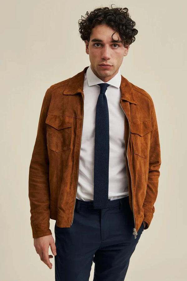 FLAVOR Herren Lederjacke Wildleder - Trucker Coat Für Herbst & Winter