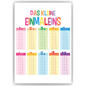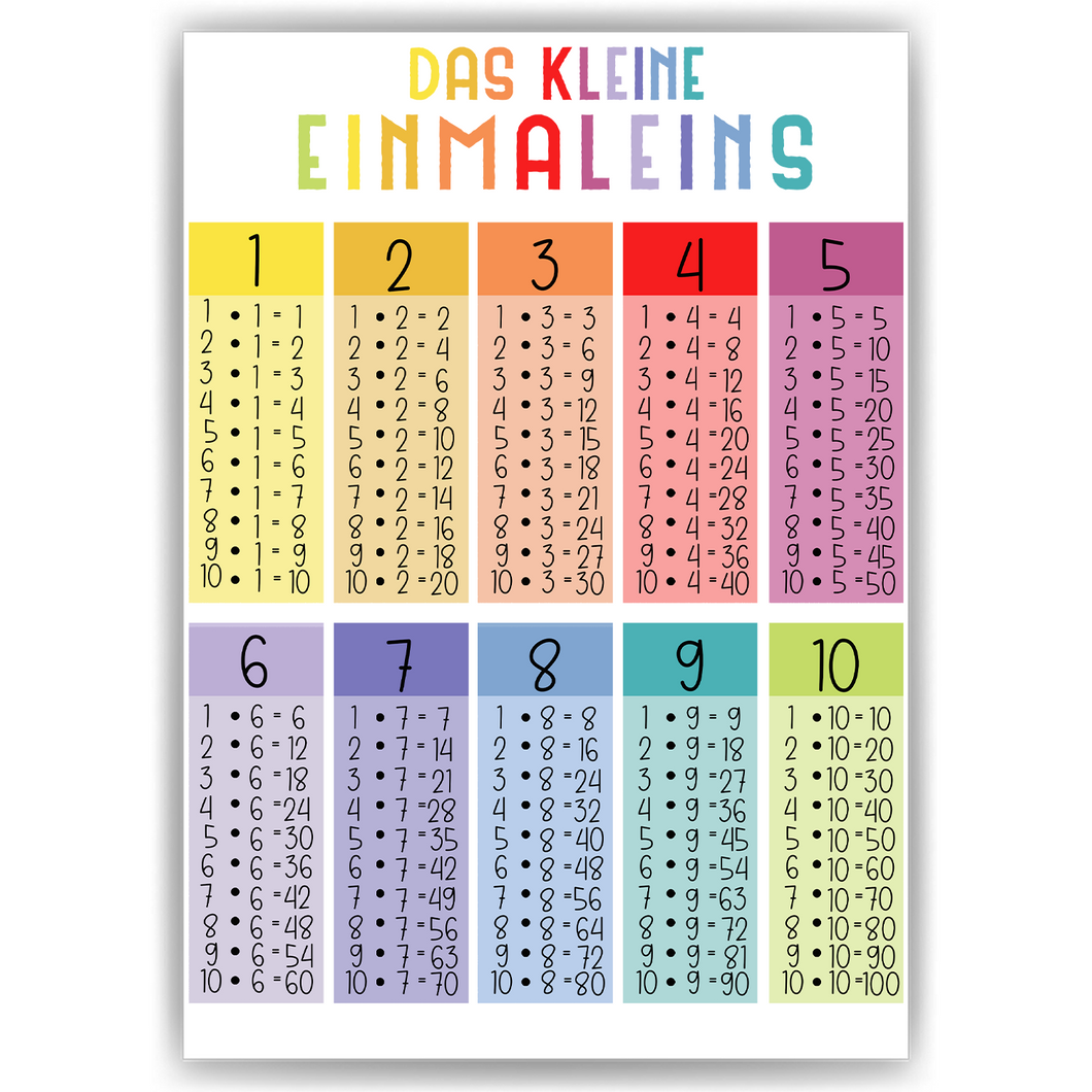 Mathe macht mit diesem Poster endlich Spaß! Das bunte Einmaleins-Poster hilft deinem Kind, die Multiplikation spielerisch zu lernen. Maße: 44x30 cm, aus dickem Premium-Papier mit scharfen, farbintensiven Druck. Kommt mit 2 Holz-Hängeschienen - einfach aufhängen und glatt streichen. Perfekt fürs Kinderzimmer, Klassenzimmer oder die Hausaufgabenecke. Deckt den Stoff von der 1. bis zur 4. Klasse ab. Fördert die Rechenfähigkeiten und macht Lust auf Mathe. Als Geschenk zur Einschulung ideal oder einfach als Unterstützung für den Schulalltag. Eltern lieben es, weil es die Hausaufgaben erleichtert, Kinder lieben es, weil es bunt und anschaulich ist. Lernposter und Deko in einem - praktischer geht's nicht!