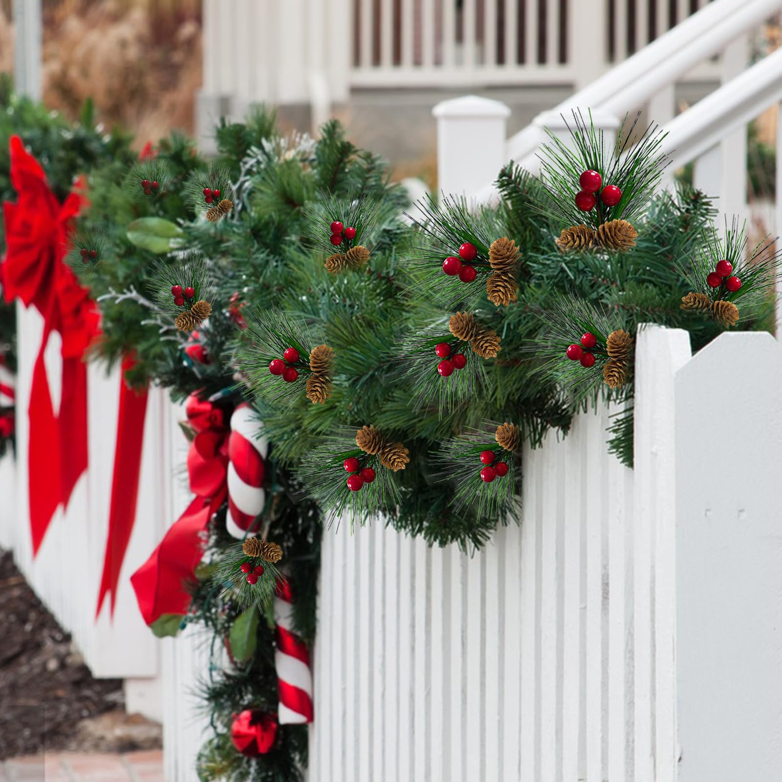 Weihnachtliche Gemütlichkeit ganz ohne Nadeln! Diese 4 künstlichen Tannenzweige von FOGAWA sehen täuschend echt aus und bringen sofort festliche Stimmung ins Haus. Jeder Zweig ist ca. 33 cm lang und mit niedlichen Tannenzapfen sowie roten Beeren verziert. Dank des flexiblen Drahts im Inneren lassen sie sich super biegen und individuell arrangieren – ob im Türkranz, am Adventsgesteck oder einfach nur in der Vase. Hergestellt aus hochwertigem Kunststoff, verblassen die Zweige nicht und können Jahr für Jahr wieder verwendet werden. Perfekt, um dein Zuhause in eine winterliche Wohlfühloase zu verwandeln – ohne Chaos, ohne Aufwand! ✔️ 4 Stück im Pack | ✔️ Länge: ca. 33 cm | ✔️ Mit Zapfen & Beeren | ✔️ Flexibel formbar | ✔️ Wiederverwendbar | ✔️ Ideal für Kranz, Girlande, Tischdeko & mehr