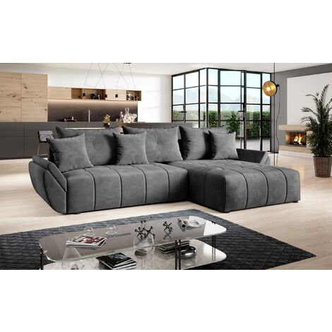 FORNIRO Ecksofa Mit Schlaffunktion | 3-Sitzer Mit Bettkasten | 199x143x80cm | Stoff Braun