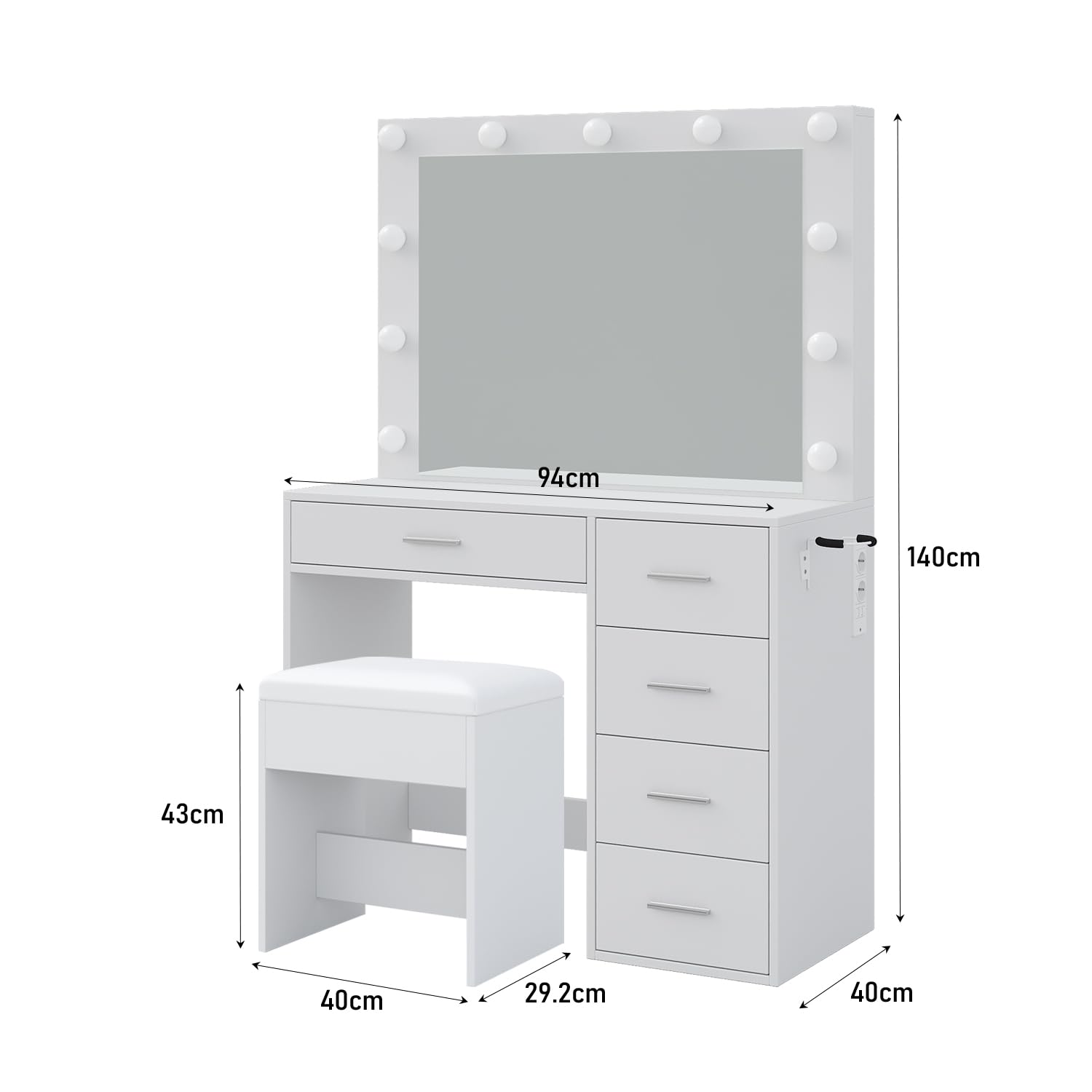 FUSOU Schminktisch Mit LED-Beleuchtung - 11 Schubladen & Hocker Inklusive