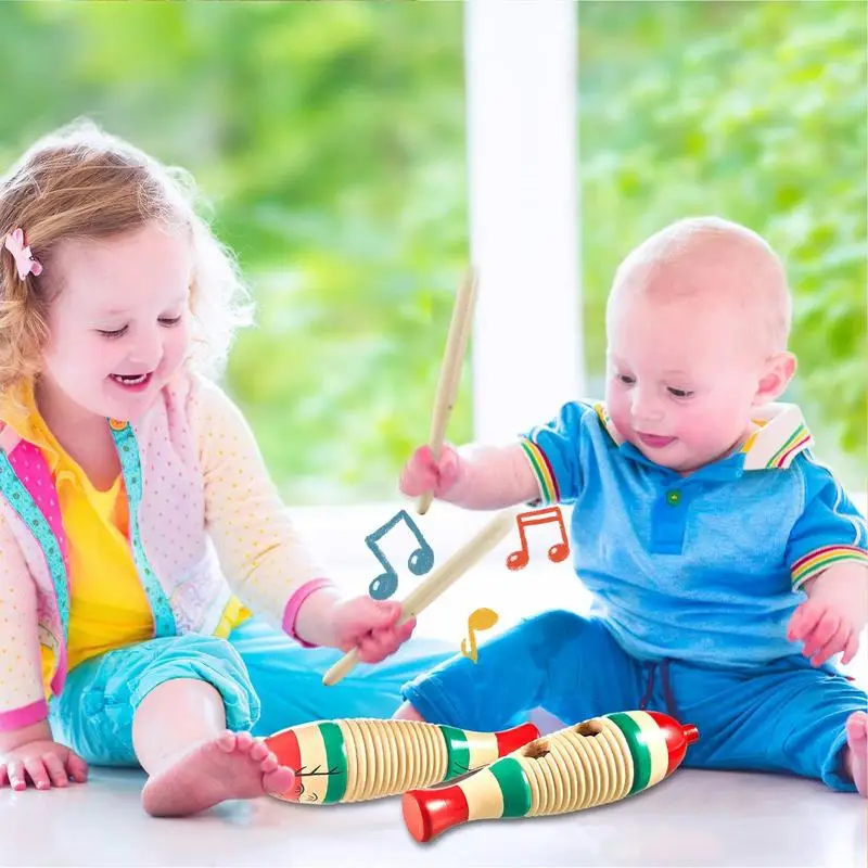 FUTUREORYY Holz Guiro Set 4-teilig - Kinder Schlaginstrument Musikspielzeug