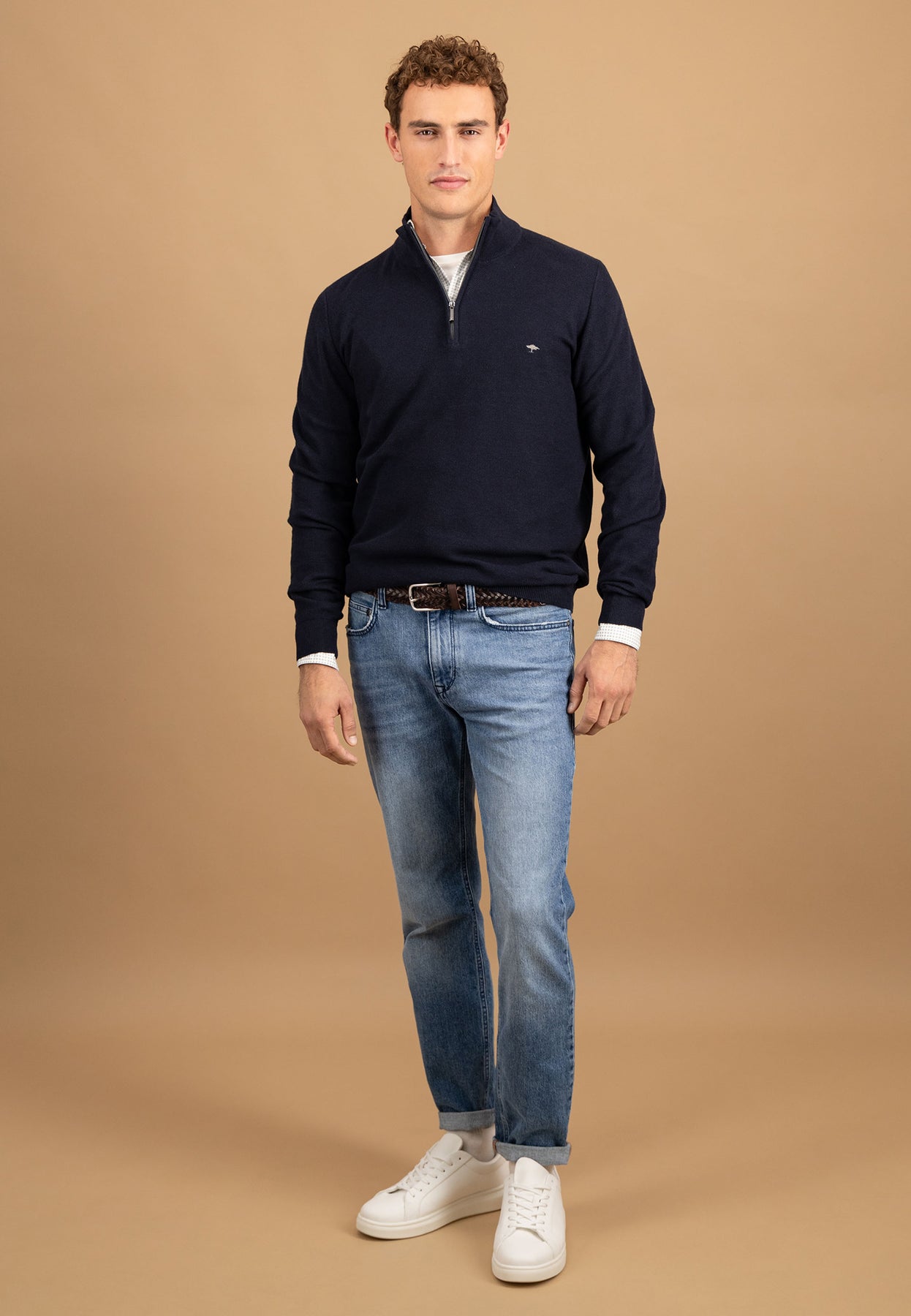 FYNCH-HATTON Pullover Mit Zip-Kragen - Baumwolle, Strukturiert & Sportlich-elegant