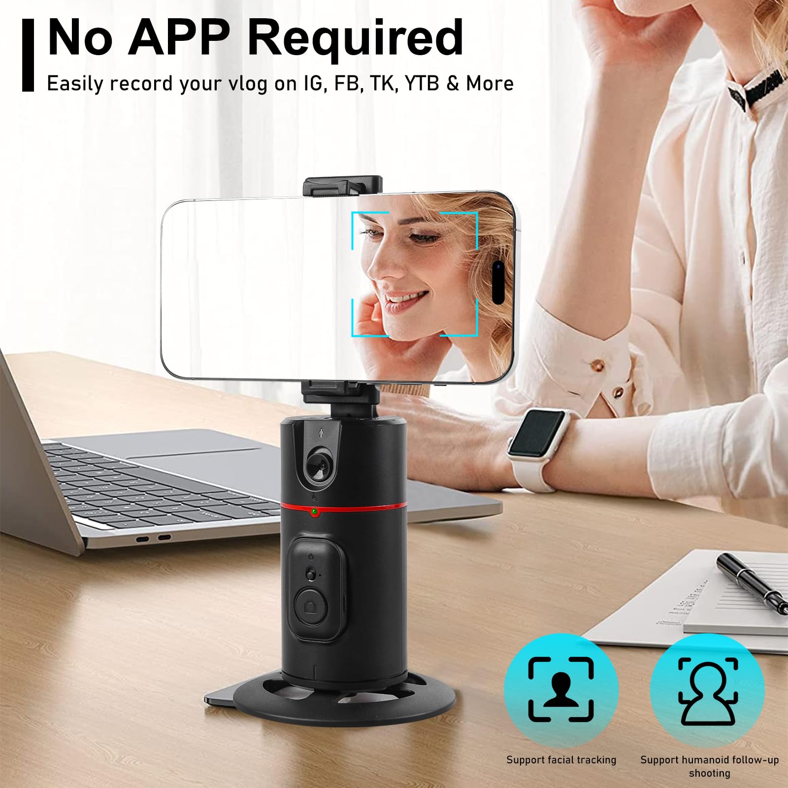 Hände frei für deine Kreativität! Dieses Auto Face Tracking Stativ verfolgt dich automatisch um 360° - perfekt für Vlogs, Live-Streaming oder Videoaufnahmen.