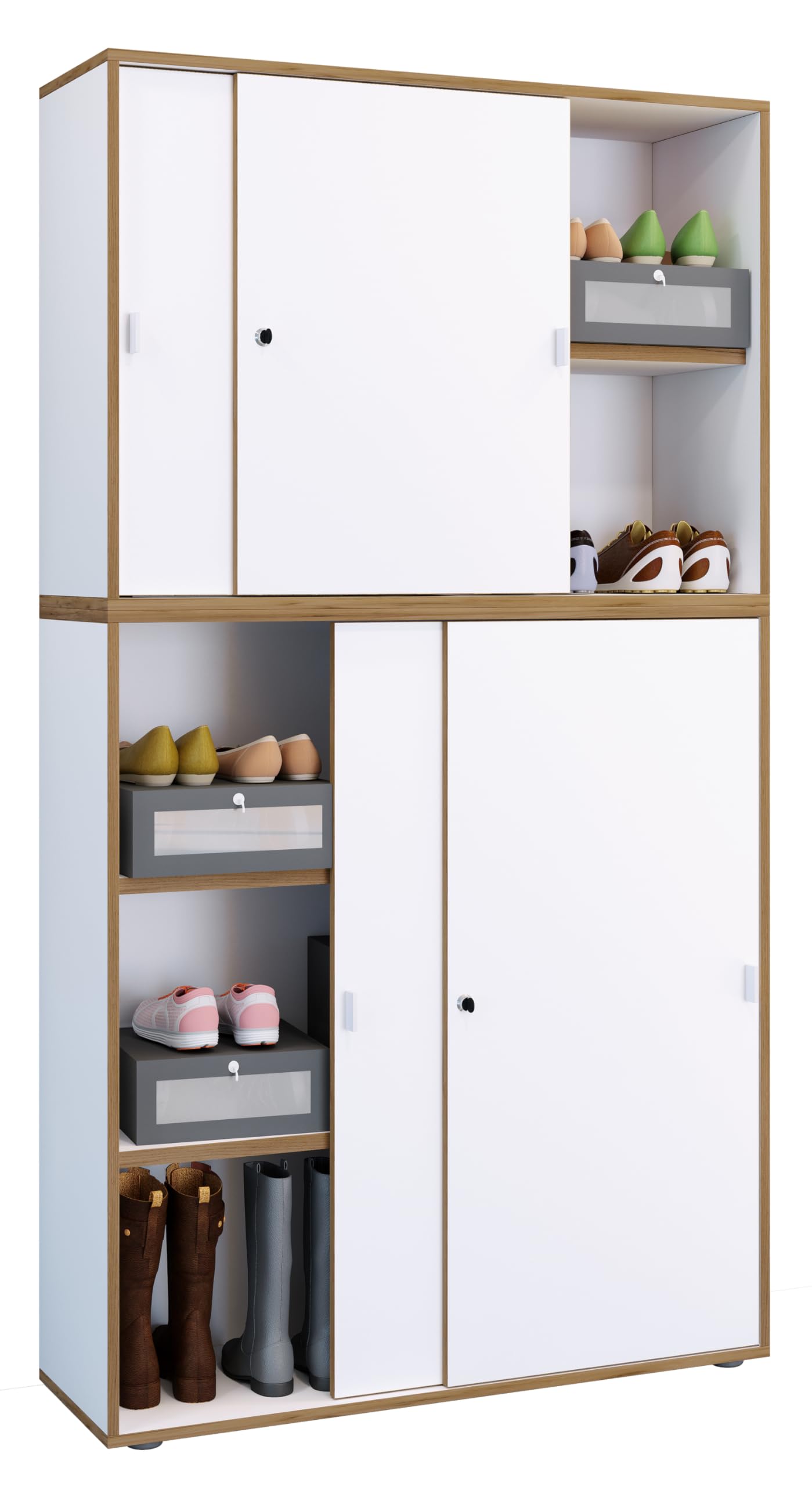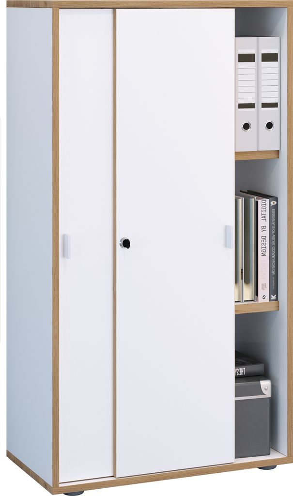 Super praktischer Büroschrank von VCM - dem Möbelexperten aus dem Schwarzwald! Der Salia-Schrank in Weiß/Honigeiche hat 5 Fächer und ist 60cm breit bei 183cm Höhe. Mit platzsparenden Schiebetüren und abschließbar - perfekt für wichtige Unterlagen. Passt ca. 35 Aktenordner rein, also richtig viel Stauraum! Die höhenverstellbaren Fachböden machen ihn super flexibel. Sieht modern aus und ist robust verarbeitet - wie man es von VCM gewohnt ist. Ob im Homeoffice oder Firmenbüro - dieser Schrank bringt Ordnung ins Chaos und sieht dabei noch gut aus. Einfach aufbauen und sofort mehr Organisation genießen!