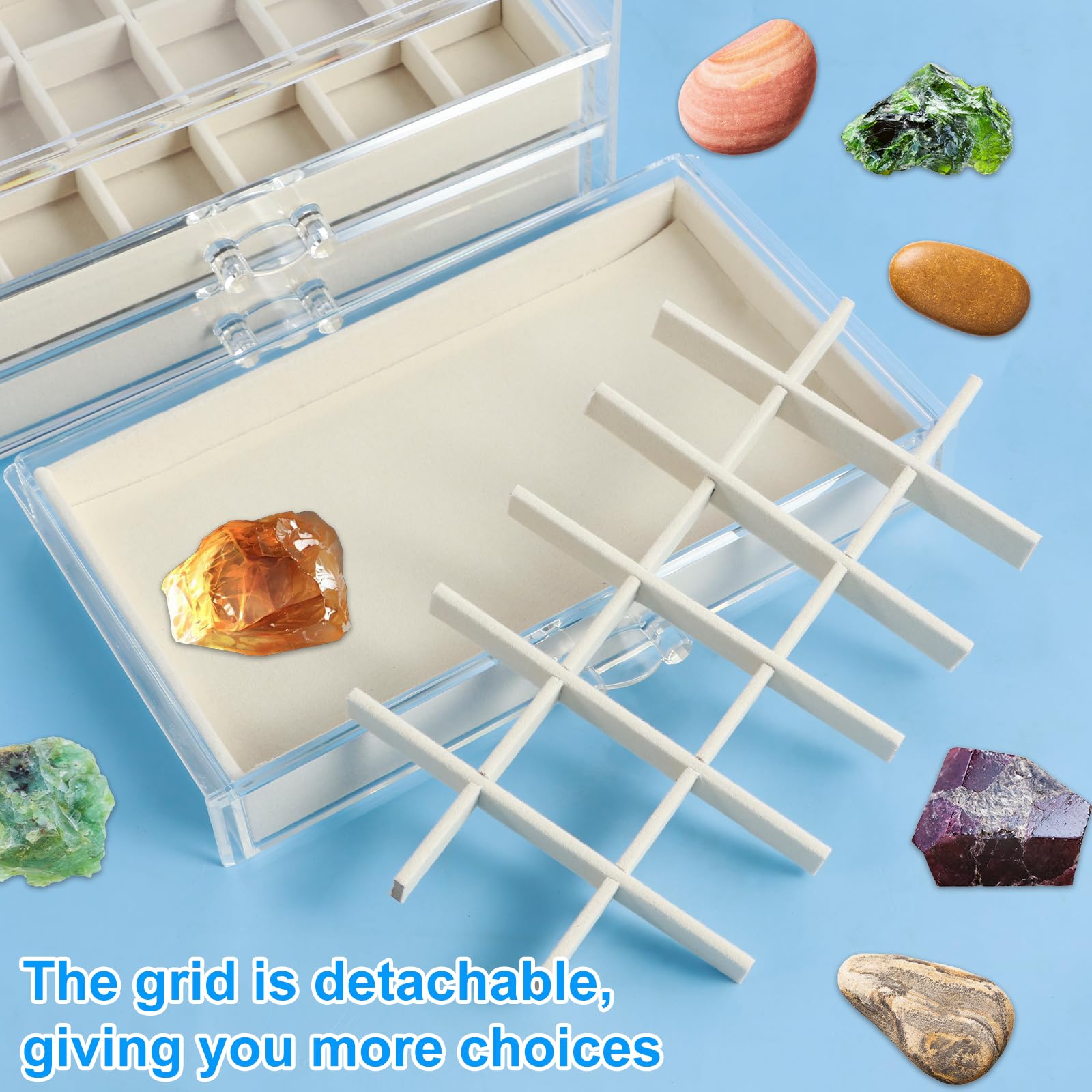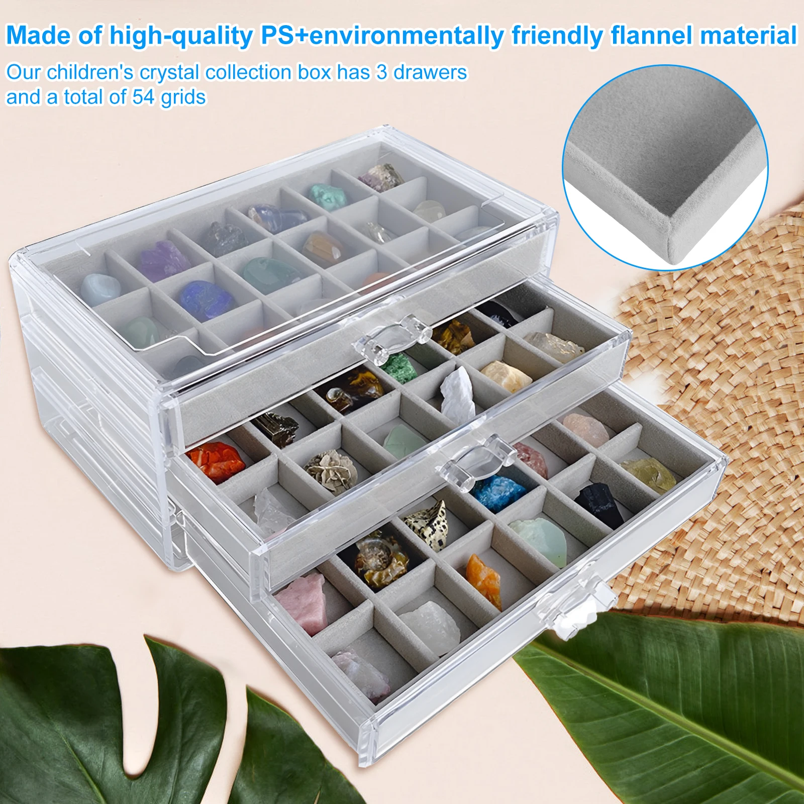 Kristall Vitrine 54-Fach - Aufbewahrungsbox Für Steine & Mineralien