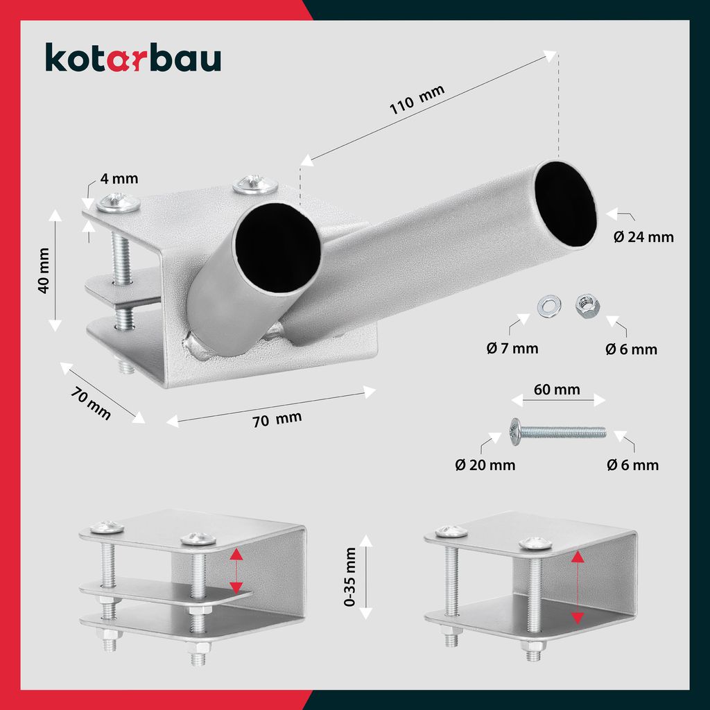KOTARBAU Fahnenhalter 1-Fach Grau - 170mm Für Balustrade Montage