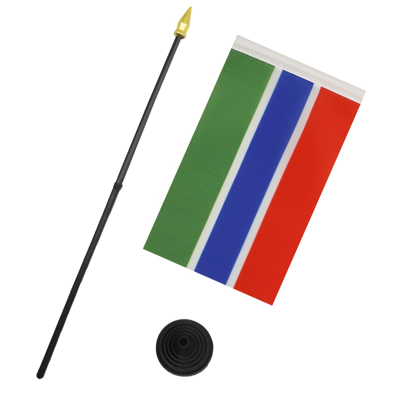 Tischflagge Gambia 15x10cm - Gambische Fahne Mit Goldener Spitze