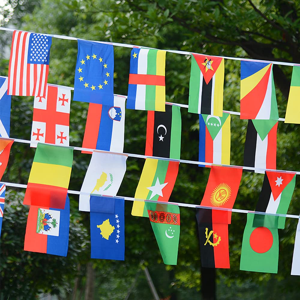 Mit 4,5m Länge und Flaggen in 20x28cm ist die Girlande ein echter Hingucker. Aus wetterbeständigem Polyester - hält auch mal einen Regenschauer aus.