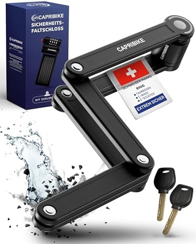 CAPRIBIKE Faltschloss Für Fahrräder & E-Bikes - Kompaktes Sicherheitsschloss Level 10 Mit 2 Schlüsseln