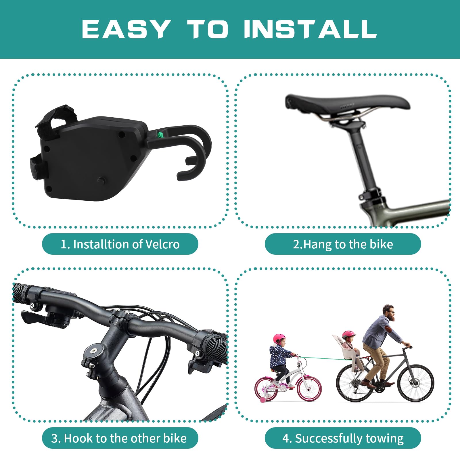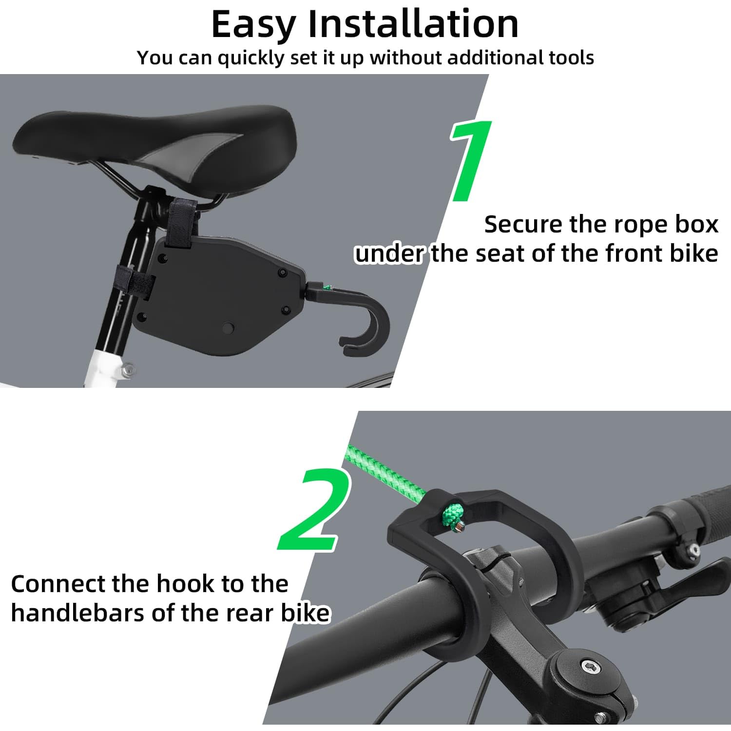 Familienausflug mit dem Fahrrad? Mit diesem Abschleppseil wird's easy! Die 2,5 Meter lange Leine sorgt für genug Abstand zwischen Erwachsenen- und Kinderfahrrad. Aus robustem ABS-Material und strapazierfähigem Nylon - hält auch auf unebenen Wegen stand. Montage ist supereinfach: Einfach unter dem Sattel des Erwachsenen befestigen und den Haken am Kinderfahrrad oder Anhänger einhaken. Kein Werkzeug nötig! Das System passt an die meisten Fahrradtypen - Mountainbike, Rennrad oder Kinderfahrrad. So können die Kleinen mitfahren, ohne ständig treten zu müssen. Sicher, stabil und leicht - perfekt für entspannte Touren. Einfach ausprobieren und mehr Spaß am Radeln haben!