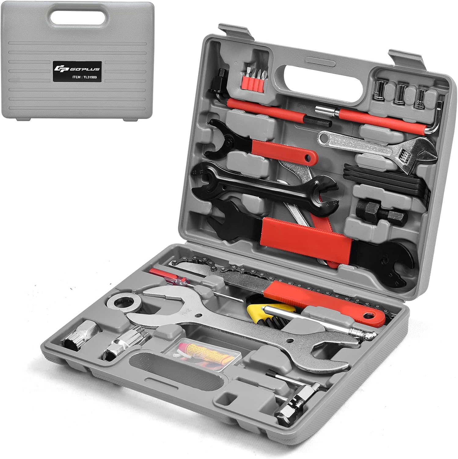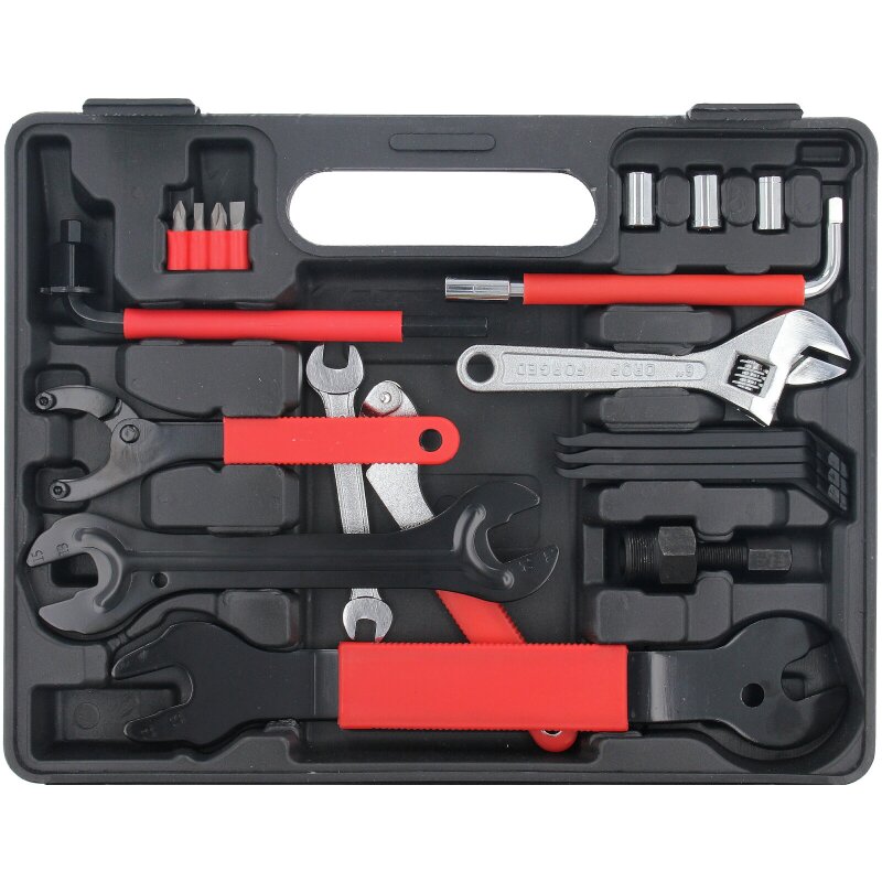Panne am Fahrrad? Kein Problem mit diesem mega-completten 48-teiligen Werkzeugkoffer! Alles drin, was du für Reifen-, Bremsen-, Licht- und Kettenreparaturen brauchst! Von Reifenhebern über Inbusschlüssel bis zur Kettenpeitsche - hier ist für jede Situation das richtige Tool dabei! Der stabile Kunststoffkoffer mit Schutzschaum innen hält alles sicher an seinem Platz - perfekt für unterwegs! Mit über 2kg Gewicht ist das Set robust genug für den regelmäßigen Einsatz, aber trotzdem noch transportabel! Egal ob du Anfänger oder Profi bist - mit dieser Ausstattung wirst du zum Fahrrad-Mechaniker! Einfach den Koffer einpacken und sorgenfrei auf Tour gehen! Kein Stress mehr mit platten Reifen oder lockeren Schrauben! Mach dein Fahrrad immer ready fürs nächste Abenteuer! Hol dir dieses praktische Set und werde unabhängig von teuren Werkstätten!