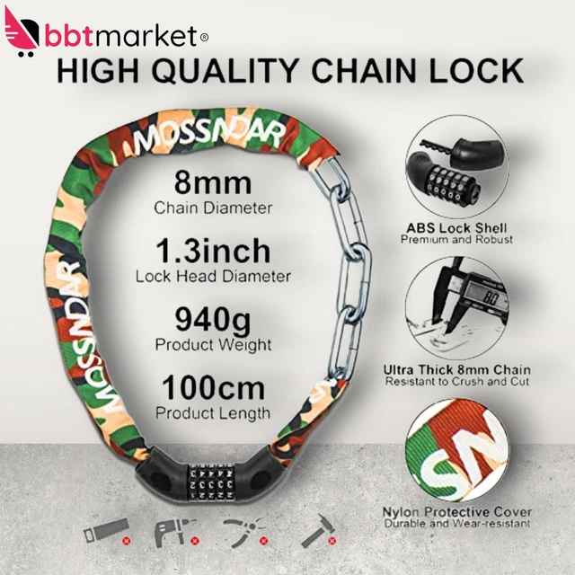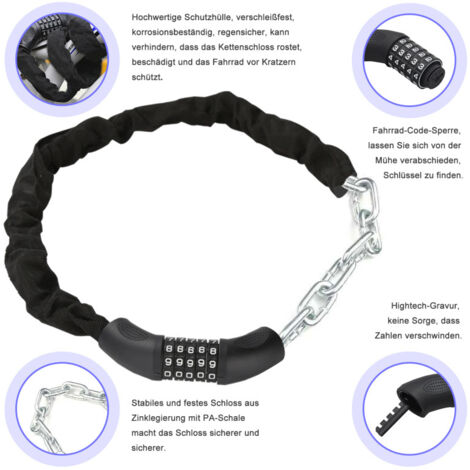 Monzana Fahrradschloss 90-120cm - Zahlencode Kettenschloss 6mm Stahl