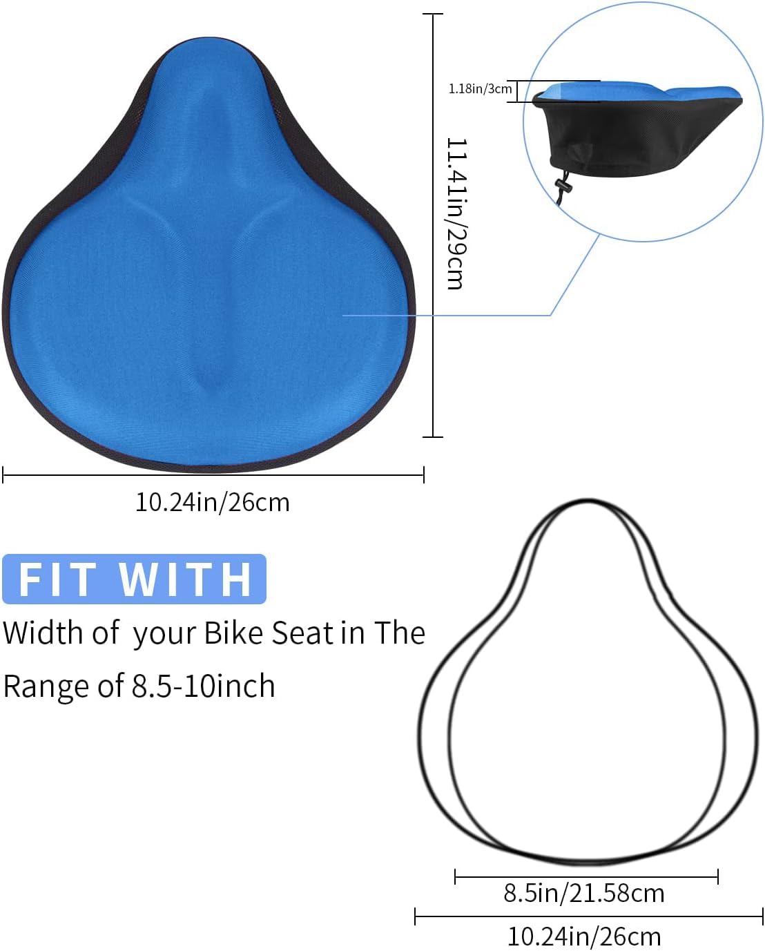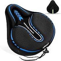 Endlich schmerzfrei Radfahren! Dieser gepolsterte Fahrradsitzbezug mit Memory-Schaum und Gel-Einlage verwandelt jeden harten Sattel in eine comfortabele Sitzfläche. Die atmungsaktive Lycra-Oberfläche leitet Feuchtigkeit ab und hält dich trocken.\\n\\nMaße: 28,5x25,5cm - passt auf die meisten Standard-Fahrradsättel (Mountainbikes, Rennräder, Heimtrainer). Die rutschfeste Unterseite mit Anti-Rutsch-Partikeln sorgt dafür, dass der Bezug auch bei wilden Fahrten sicher an Ort und Stelle bleibt.\\n\\nDie mittlere Ablaufnut verbessert die Luftzirkulation und entlastet sensible Bereiche. Einfach über den Sattel stülpen, das Zugseil festziehen - und schon kann's losgehen!\\n\\nMaterial: Lycra, Gel, Memory-Schaum\\nFarbe: Schwarz+Blau\\nPassend für Sattelbreiten: 21-25cm\\nPerfekt für lange Touren, Pendler oder Hobby-Radler - dein Hintern wird's dir danken!