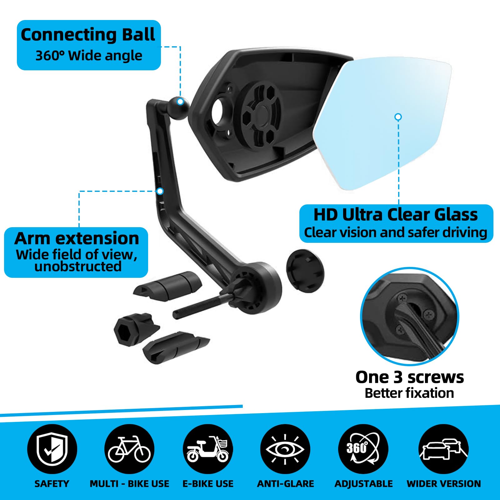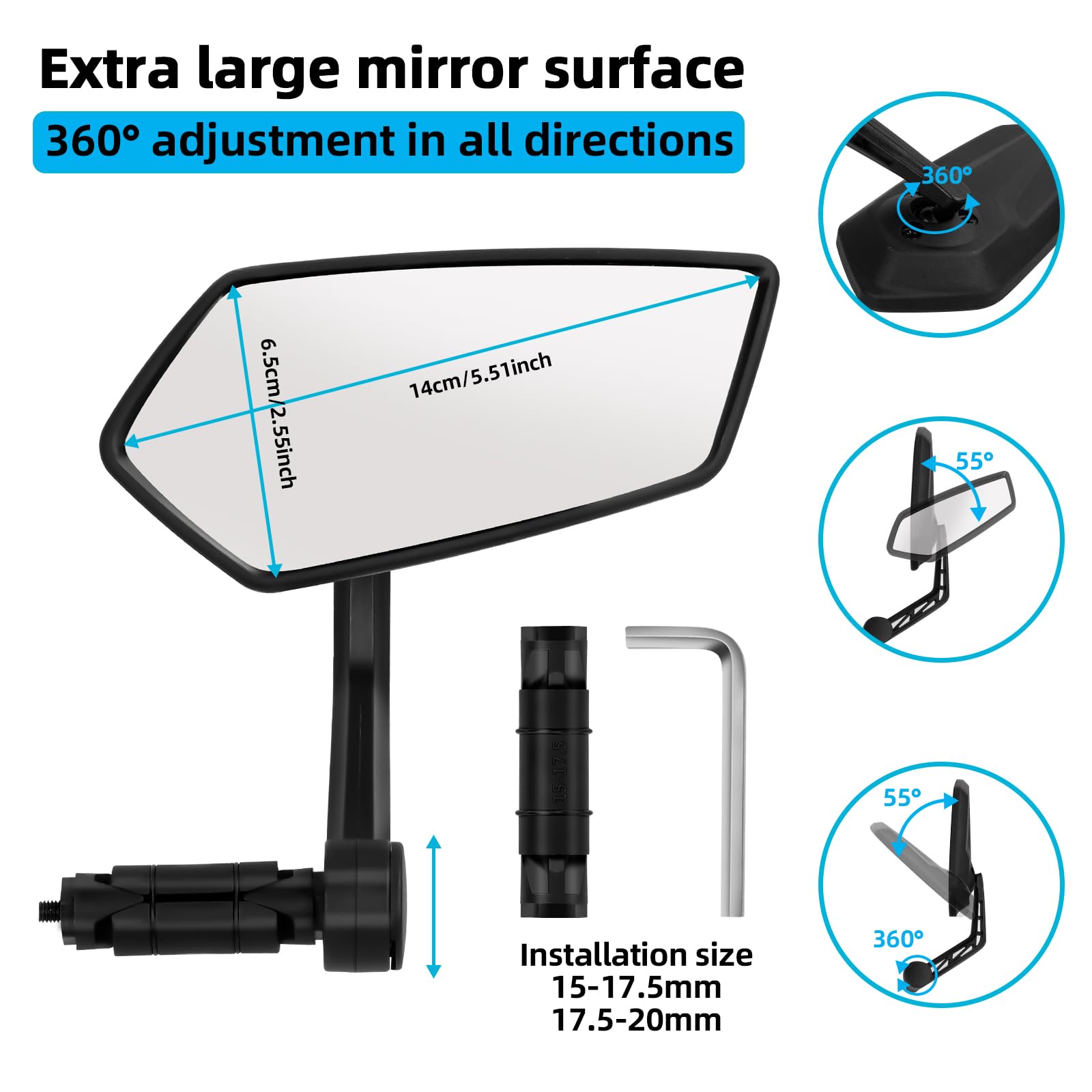 EDGE Fahrradspiegel Premium - Verstellbarer E-Bike Spiegel Für Links Oder Rechts, Bis 22,2cm Lenker