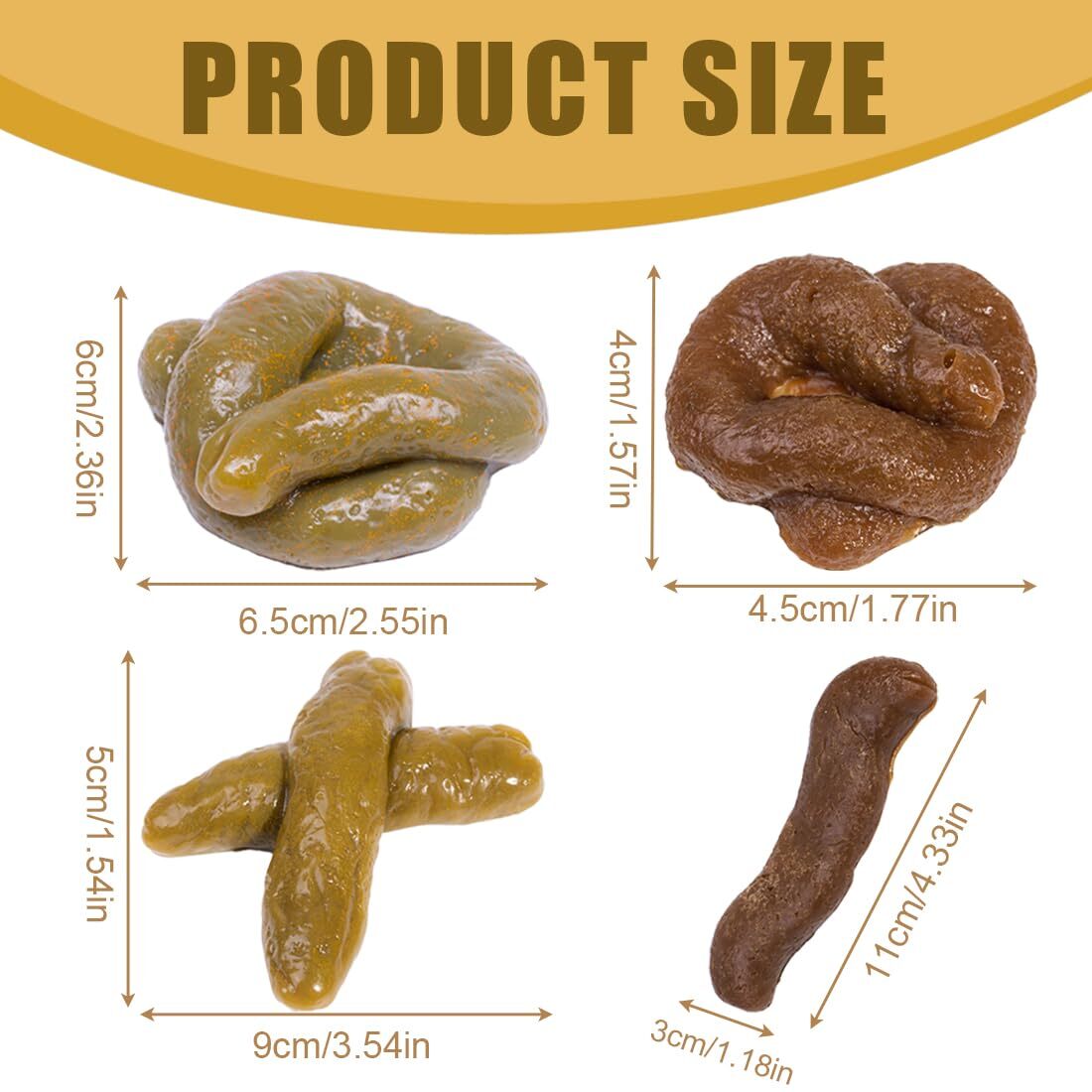 Bock auf richtig lustige Streiche? Dieses 10-teilige Set mit fake Kackhaufen bringt garantiert Lacher! Die Teile sehen ultra-realistisch aus - Farbe und Form sind originalgetreu nachgebildet. Einfach irgendwo platzieren und zusehen, wie die Leute reagieren! Perfekt für Aprilscherze, Halloween-Partys oder einfach mal zum Aufheitern. Die Kackhaufen sind aus weichem, ungiftigem Plastik, leicht und wiederverwendbar. Hinterlassen keine Flecken und kleben nicht an den Händen. Leg sie auf den Boden, ins Bett, in die Badewanne oder auf den Toilettensitz - der Kreativität sind keine Grenzen gesetzt! Im Set sind verschiedene Formen enthalten, plus einem praktischen Drawstring-Beutel zur Aufbewahrung. Mach deine Freunde und Familie an - aber natürlich alles harmlos und in gutem Humor! Wenn mal was nicht passt, melde dich einfach bei uns. Ein Muss für alle, die gerne lachen und andere überraschen!