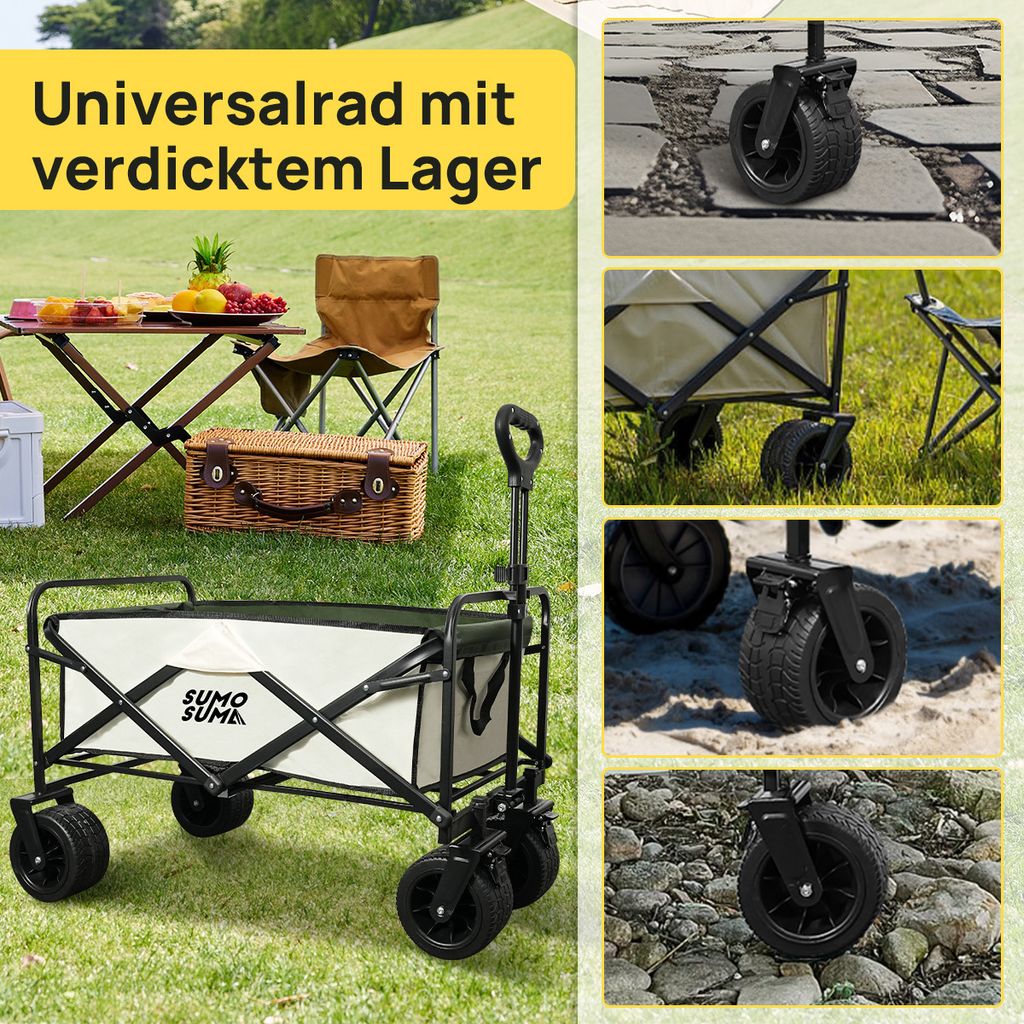 3in1 Bollerwagen Faltbar 150L - Mit Bremsen & All-Terrain Rädern