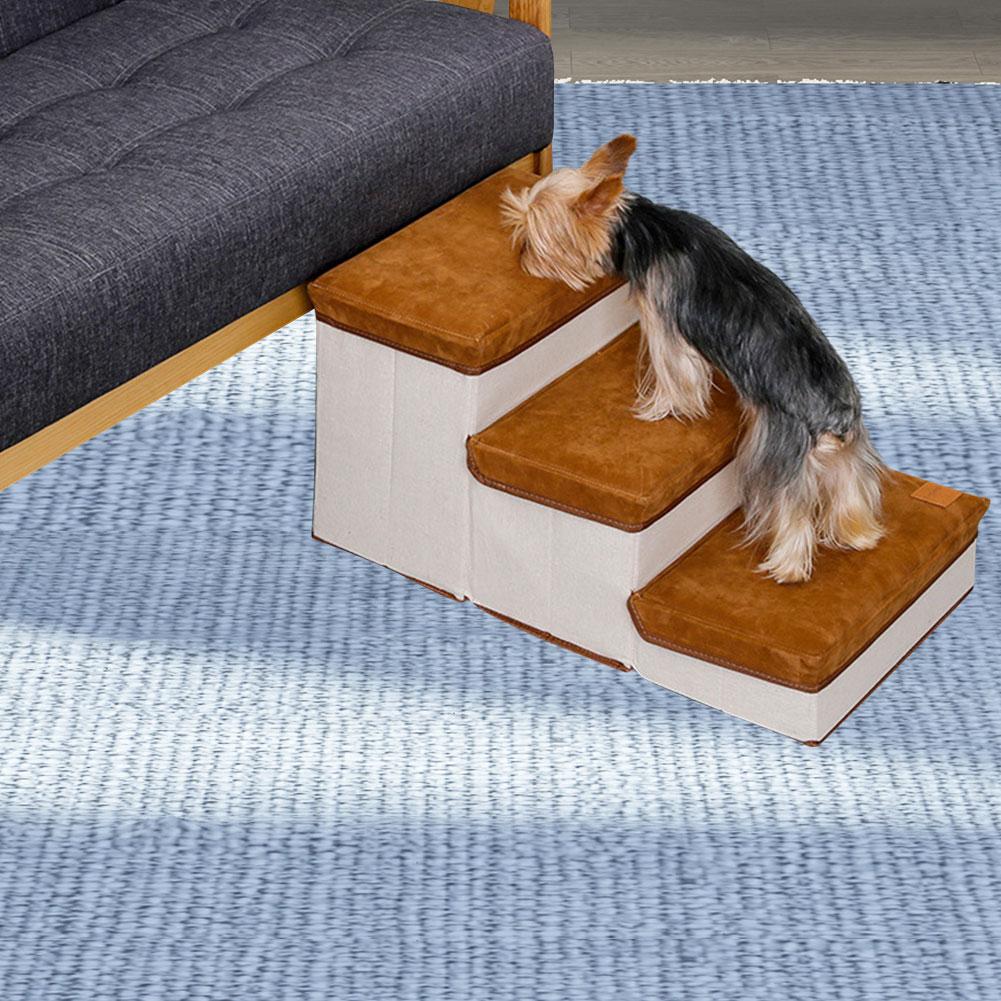 Perfekt für kleine Hunde und Welpen! Diese praktische 2-stufige Hunderampe lässt sich ganz einfach zusammenfalten und überall mitnehmen. Mit den Maßen 50x30x10 cm passt sie super neben das Bett oder auf die Couch. Das Mesh-Material ist super robust und die rutschfeste Unterseite gibt deinem Liebling extra Halt. Macht das Leben leichter für ältere Hunde oder kleine Rassen, die nicht mehr so gut springen können. Waschbar per Hand - einfach in der Pflege. Aus umweltfreundlichem Kunstpelz, der sich weich anfühlt und die Gelenke schont. Ideal für Zuhause, Urlaub oder Besuche. Dein Hund wird's lieben!