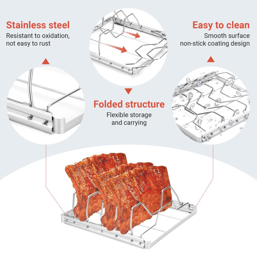 DONGKER Rippchenhalter Edelstahl Faltbar - Für Grill & Backofen | Spülmaschinengeeignet & Antihaft
