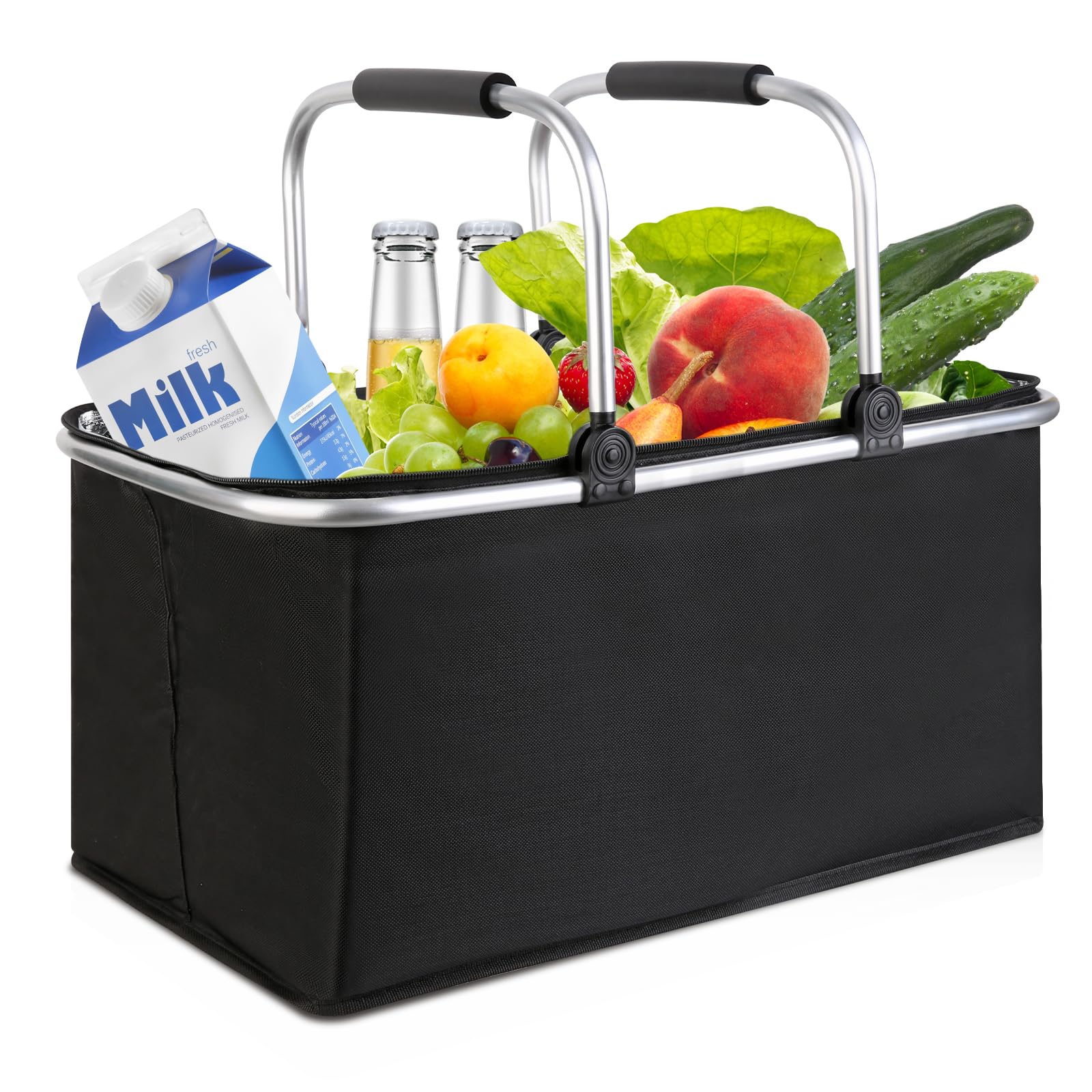 Isolierter Picknickkorb 47L Faltbar - Kühlkorb Mit Aluminiumrahmen 55x33x30cm