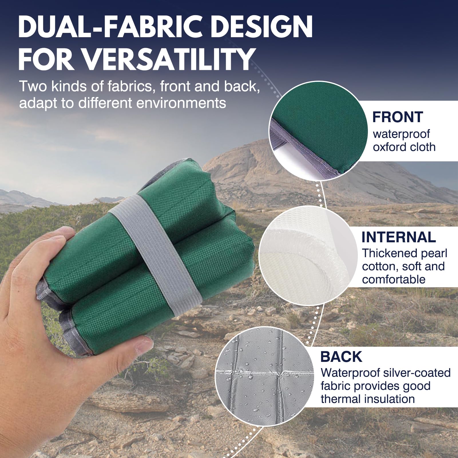 Perfekt für Outdoor-Fans: 2 praktische Sitzkissen im Set! Jedes 38x38cm groß, faltbar und mit Tragetasche - super leicht zu transportieren. Aus umweltfreundlichem XPE-Material, das isoliert und wasserdicht ist. Die Blasen-Struktur polstert super und schützt vor Kälte und Nässe. Hält jedes Gewicht aus ohne sich zu verformen. Ideal für Wandern, Camping, Stadion-Besuche, Angeln oder einfach für den Park. In Grün - dezent und praktisch. Einfach zusammengefaltet und schon passt's in jeden Rucksack. Macht jedes Sitzen im Freien so viel komfortabler! Auch für Kinder geeignet. Ein Muss für alle Outdoor-Aktivitäten!