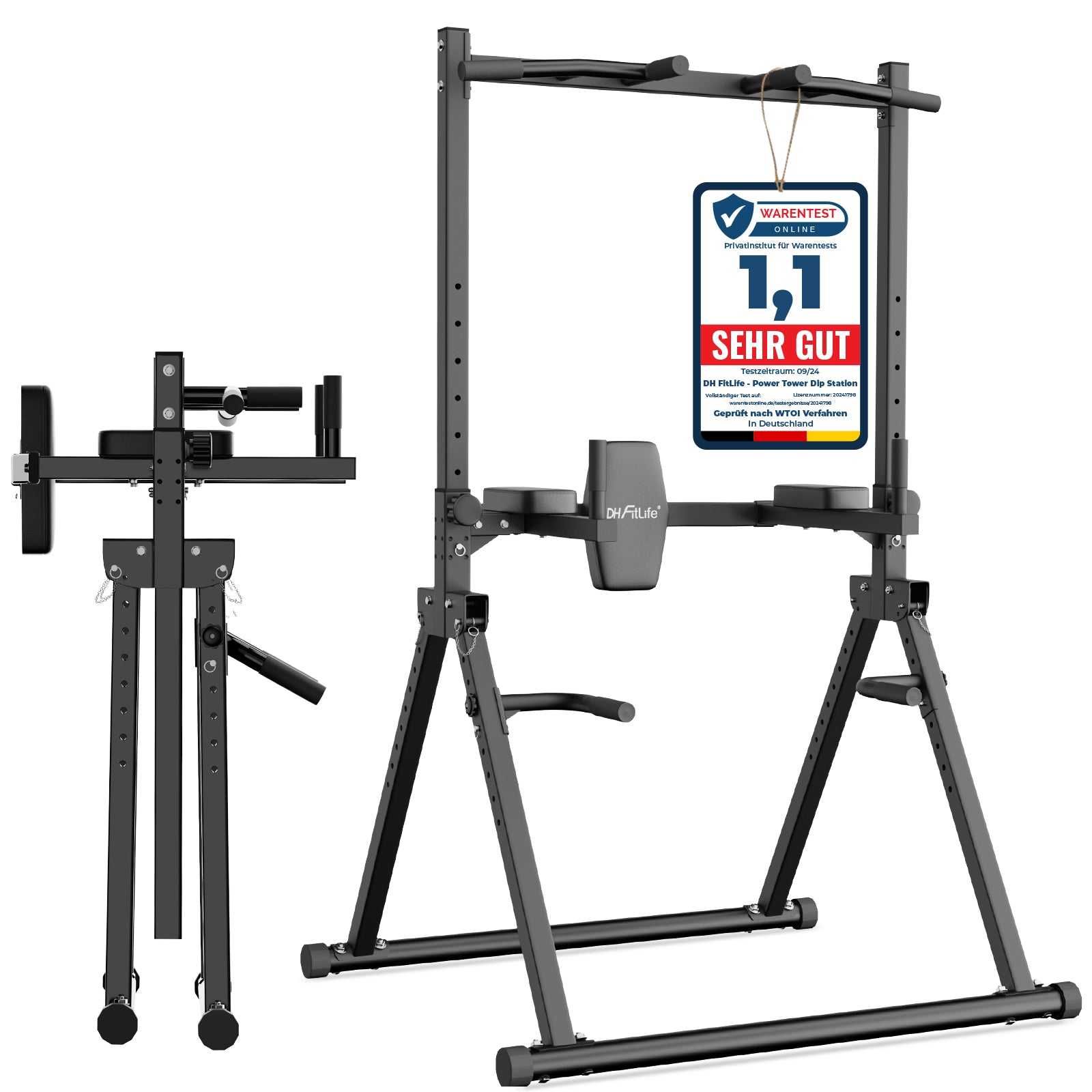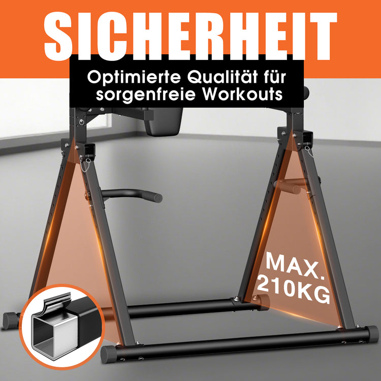 Ob Klimmzüge, Dips, Liegestütze oder Bauchtraining - hier ist für jede Muskelgruppe was dabei. Die parallelen Stangen sind ebenfalls höhenverstellbar von 49-98 cm.