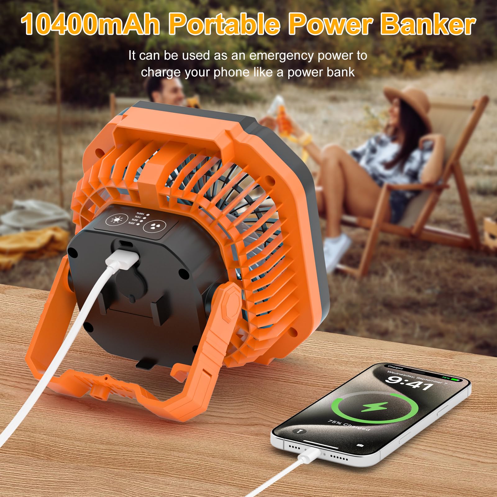Solar Ventilator Outdoor - Faltbarer Campinglüfter Mit LED-Licht, 3 Geschwindigkeiten, 4000 MAh