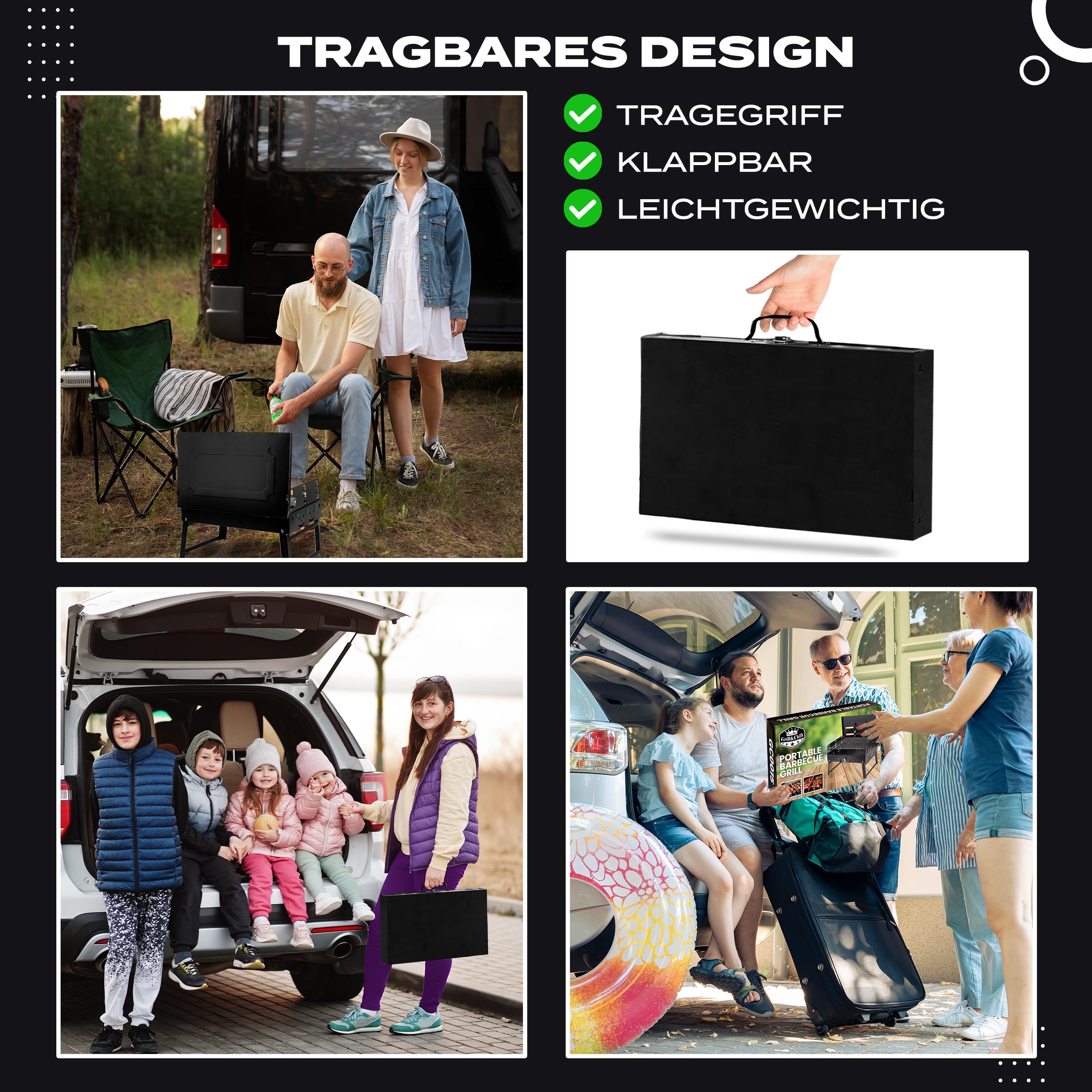 BAZEITFLOW Faltbarer Mini Grill - Tragbarer Holzkohlegrill 24x17x13cm Für Camping