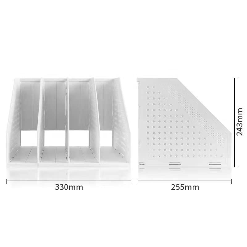 Endlich Ordnung auf dem Schreibtisch! Dieser praktische Ordnerhalter hat 4 Fächer für all deine A4-Unterlagen, Bücher und Zeitschriften. Maße: 33 x 22,6 x 24,4 cm - perfekt für den Schreibtisch. Das coole daran: Er ist faltbar! Wenn du mal weniger Platz brauchst, klappst du einfach ein oder zwei Fächer zusammen. Das hohle Design sieht nicht nur stylisch aus, sondern ist auch super einfach zu reinigen. Aus stabilem Kunststoff gemacht - hält auch schwerere Ordner problemlos aus. Die Kanten sind alle glatt, also keine Verletzungsgefahr. Perfekt fürs Büro, Homeoffice oder für Schüler und Studenten. Einfach aufstellen, Dokumente rein - und schon ist der Schreibtisch aufgeräumt! Verfügbar in schwarz und weiß, passt zu jedem Einrichtungsstil. Nie wieder Chaos auf dem Schreibtisch - mit diesem Organizer findest du alles sofort!