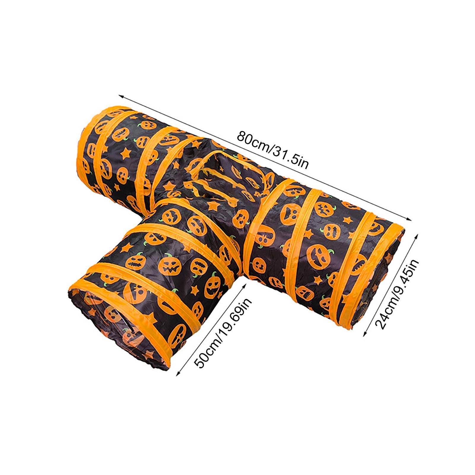 Katzentunnel Halloween Design - Faltbarer Spieltunnel Mit Kürbis Und Spinnennetz Motiven