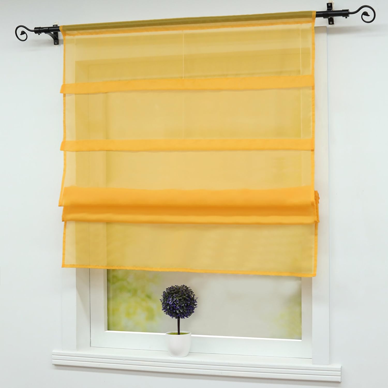 Uni Farbe Faltrollo Voile 100x155cm - Raffrollo Mit Tunnelzug Für Gardinenstangen