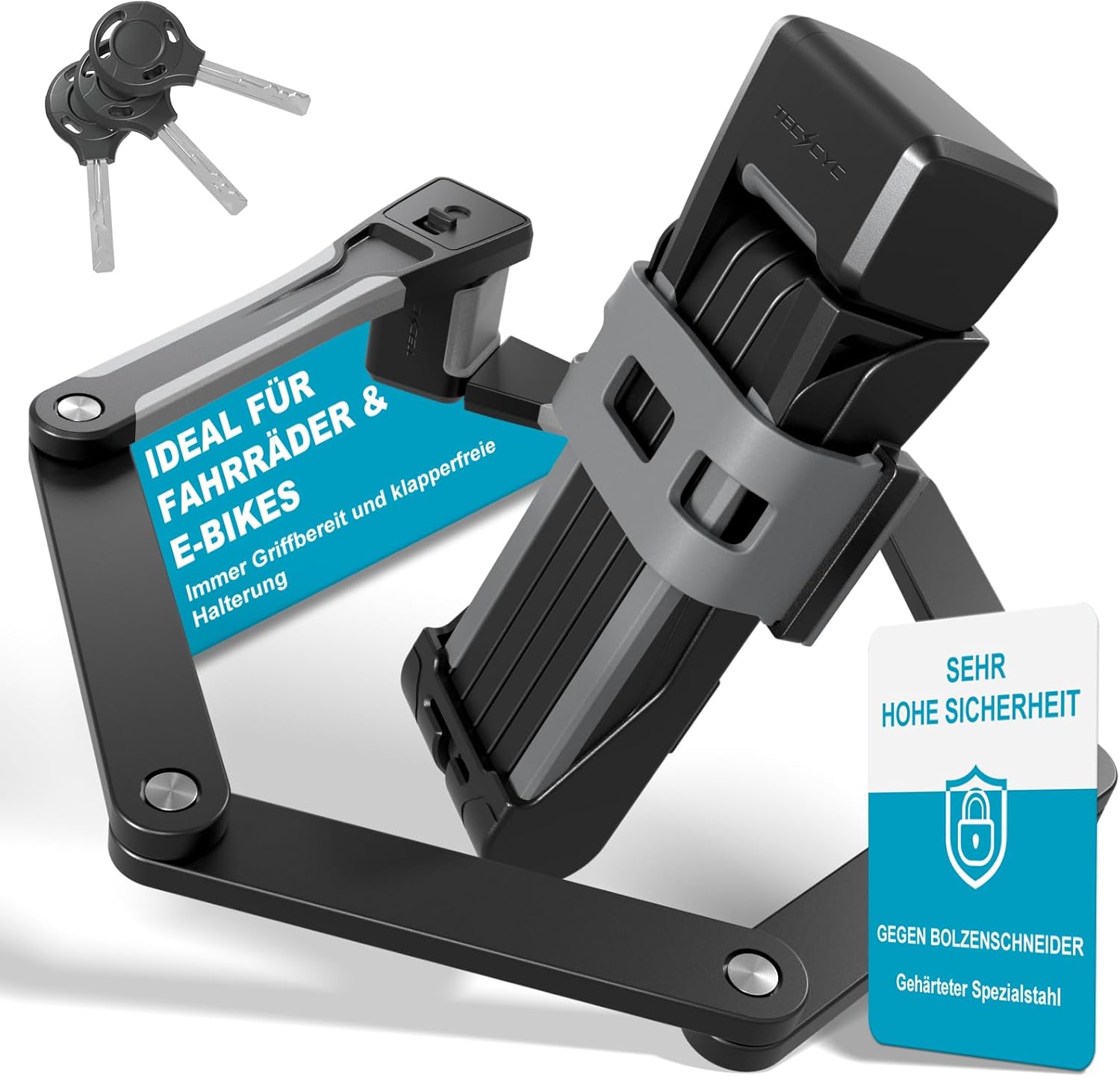 Hey ihr Radfahrer! Dieses TITANLOCK Faltschloss ist echt der Hammer für alle, die ihr Bike lieben. Kein lästiges PIN-Eingeben mehr - einfach den Schlüssel drehen und schon ist das Schloss auf oder zu. Aus gehärtetem Carbonstahl gemacht und mit Anti-Kratz-Beschichtung, damit euer Fahrradrahmen heil bleibt. Das geniale Safe & Easy System sorgt dafür, dass der Zylimmer immer sauber bleibt und nicht verklemmt. Mit der praktischen Halterung wird das Schloss einfach am Rahmen befestigt - kein Klappern, kein Verrutschen! Das Titansecure System mit Bohrschutzplatte macht Dieben das Leben schwer - selbst Profis haben hier kaum eine Chance. 100 cm Länge reichen locker aus, um Fahrrad plus Laterne oder Zaun anzuschließen. Egal ob Citybike, E-Bike oder E-Scooter - dieses Schloss passt immer. Über 10.000 zufriedene Kunden vertrauen bereits auf TITANLOCK! Also, worauf wartet ihr noch? Schützt euer Rad mit einem Schloss, das wirklich was taucht. Denn ein gutes Schloss ist die beste Versicherung gegen Fahrraddiebe!