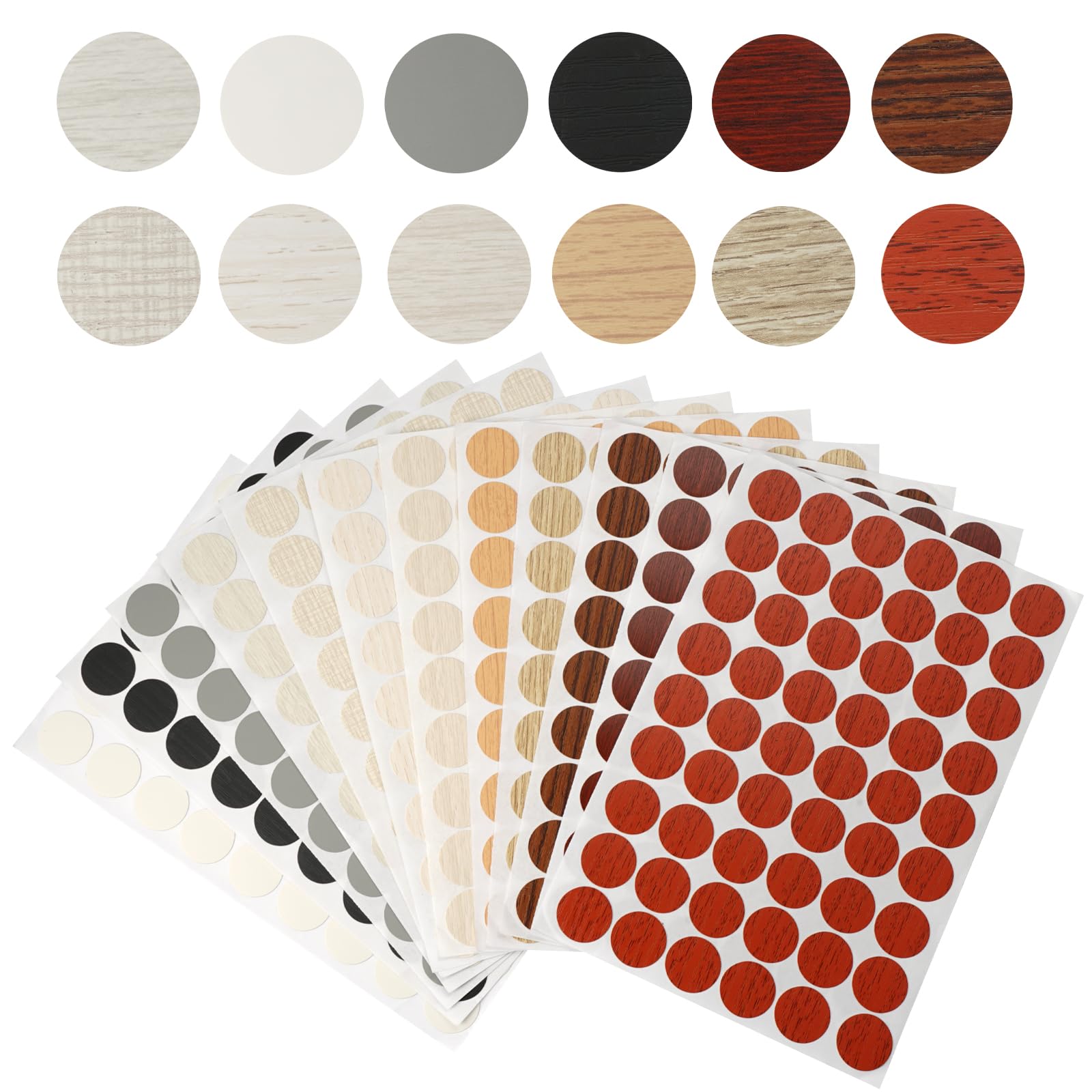 Schluss mit hässlichen Schraubenlöchern! Diese 648 selbstklebenden Abdeckungen in 12 verschiedenen Holzoptiken machen deine Möbel wieder hübsch. Einfach abziehen, aufkleben - fertig! 21mm Durchmesser, perfekt für Schränke, Tische, Regale und mehr. Aus hochwertigem PVC, verblassen nicht und hinterlassen keine Rückstände. Die riesige Menge reicht für viele Projekte - auch zum Teilen mit Freunden! Versteckt nicht nur Löcher, sondern auch Kratzer und Macken. Einfach, günstig und effektiv - deine Möbel sagen Danke!