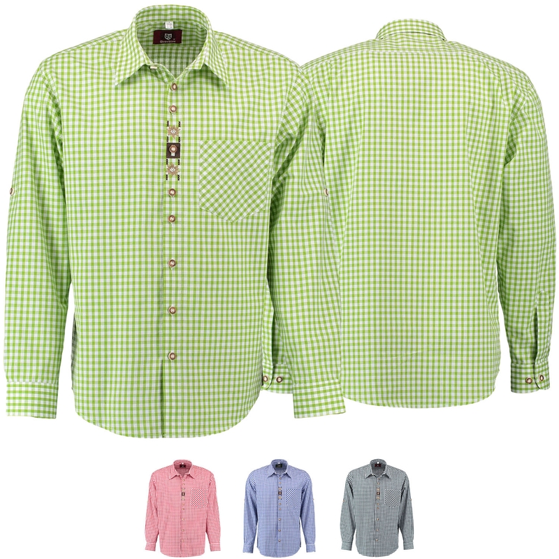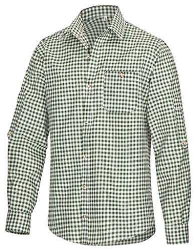 Mufimex Herren Trachtenhemd Karo - 5 Farben, Krempelbare Ärmel, 65% Polyester 35% Baumwolle