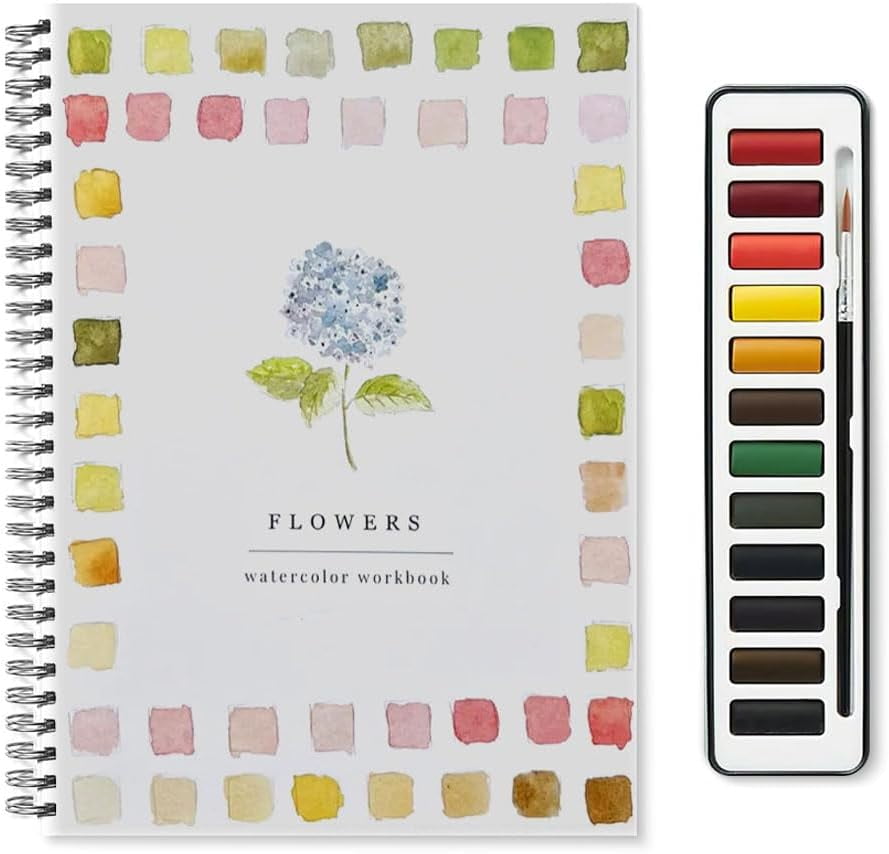 Aquarell Set Mit Arbeitsmappe - 12 Farben + Pinsel + Skizzenbuch Für Unterwegs