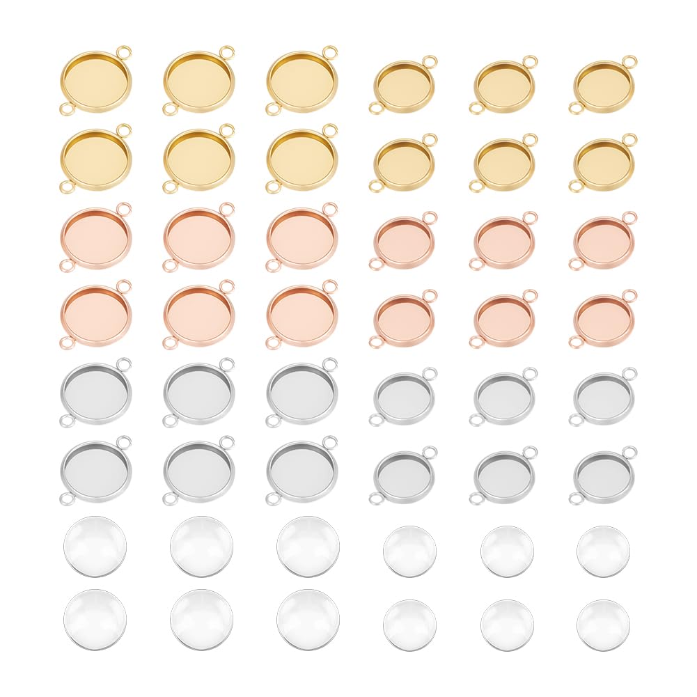 Kreiere deine eigenen einzigartigen Armbänder! Dieses Set enthält 10 leere Armband-Fassungen aus Edelstahl und 10 klare Glas-Cabochons (12 mm). Die offenen, runden Designs (54 mm Innendurchmesser) lassen sich leicht an jedes Handgelenk anpassen. Einfach deinen Cabochon, Stempel oder Edelstein in die Fassung legen - schon ist dein personalisiertes Armband fertig! Aus hochwertigem Material, das nicht verblasst oder sich verformt. Perfekt für Bastler, als Geschenk zu Valentinstag, Geburtstag oder einfach zum Selbermachen. Zeig deine Kreativität und mach einzigartigen Schmuck!