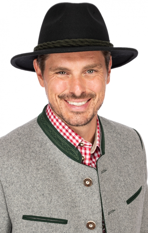 Faustmann Trachtenhut Tiefenbach Velour Grün - Lässiger Hut Mit Kordel-Garnitur