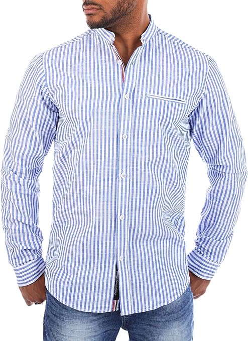 Stilvoll und bequem zugleich! Dieses elegante Herrenhemd aus Baumwolle-Leinen-Mix ist perfekt für Business und Freizeit. Mit modischem Stehkragen und langen Ärmeln für einen zeitlosen Look. Der leichte Stoff sorgt für angenehmen Tragekomfort auch an warmen Tagen. Ob im Büro, beim Meeting oder am Abend - dieses Hemd macht immer eine gute Figur. In verschiedenen Größen erhältlich, für die perfekte Passform. Ein Must-have für jeden modernen Herren, der Wert auf Stil und Komfort legt. Einfach anziehen und gut aussehen!
