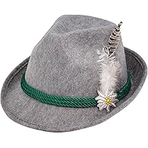 Trachtenhut Mit Feder Oktoberfest - Grauer Filzhut Mit Deutschland Band - Für Herren & Damen