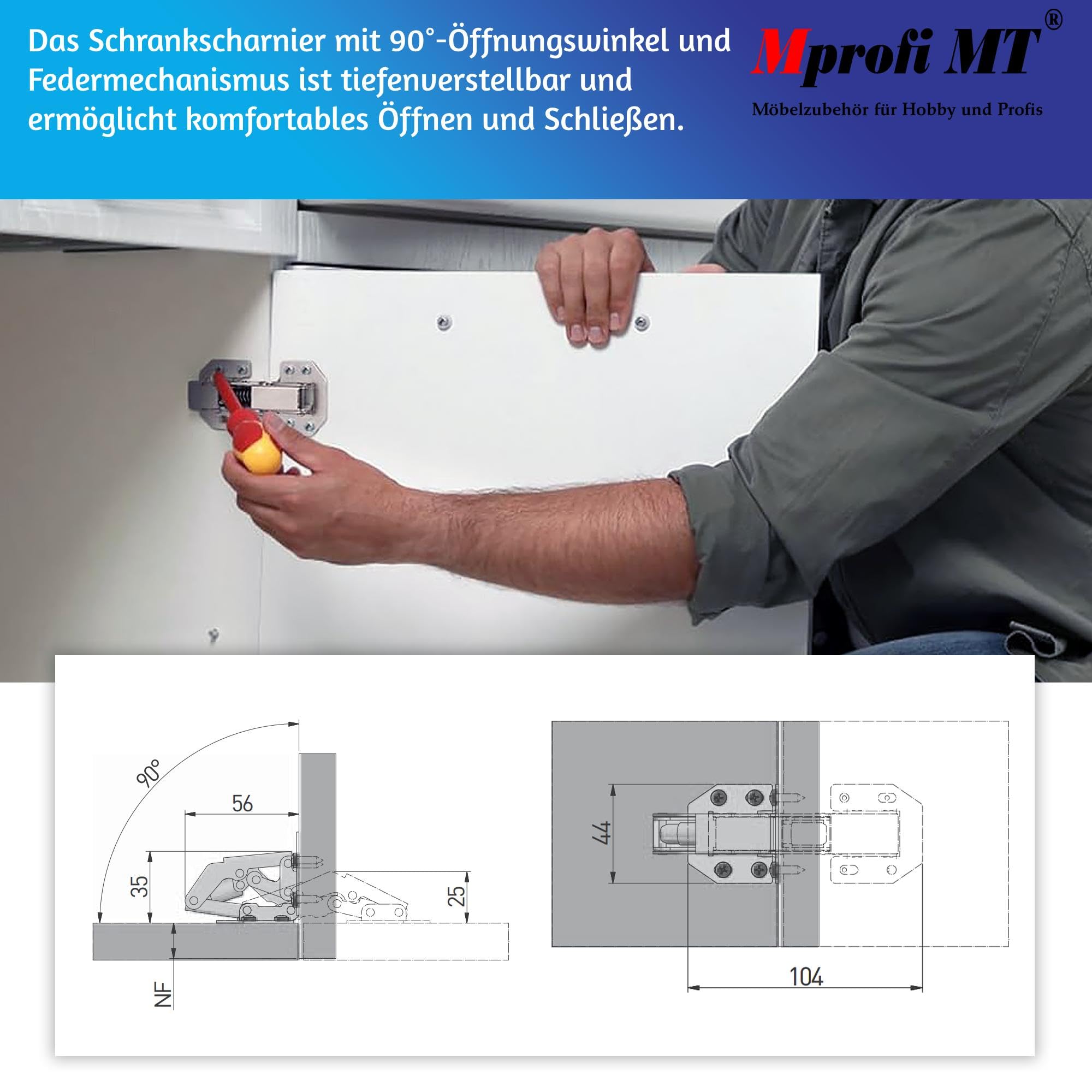 Klack! Diese Federscharniere sind die perfekte Lösung für Türen die sich selbst schließen sollen. Im 2er-Set, also für eine Tür genau richtig. Der 90-Grad-Winkel sorgt dafür dass die Tür sicher schließt. In hellem Bronze-Ton - sieht einfach edel aus! Perfekt für Holztüren, Schrankdeckel oder Truhen. Die Feder ist genau richtig eingestellt - nicht zu stark, nicht zu schwach. Einfach montieren und schon schließt sich die Tür wie von alleine. Super praktisch für Schränke wo man immer vergisst die Tür zu schließen. Auch für DIY-Projekte oder Möbelrestauration geeignet. Robust verarbeitet, hält lange. Macht jedes Möbelstück ein bisschen professioneller. Ein kleines Teil mit großer Wirkung!