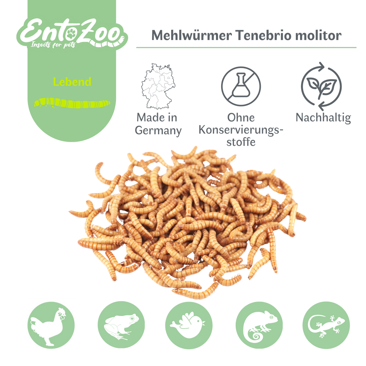 Die Qualität ist top - beste Ware zum fairen Preis. Egal ob für deine Bartagame, deinen Vogel oder den Angelausflug - mit diesen Mehlwürmern bist du bestens ausgestattet.