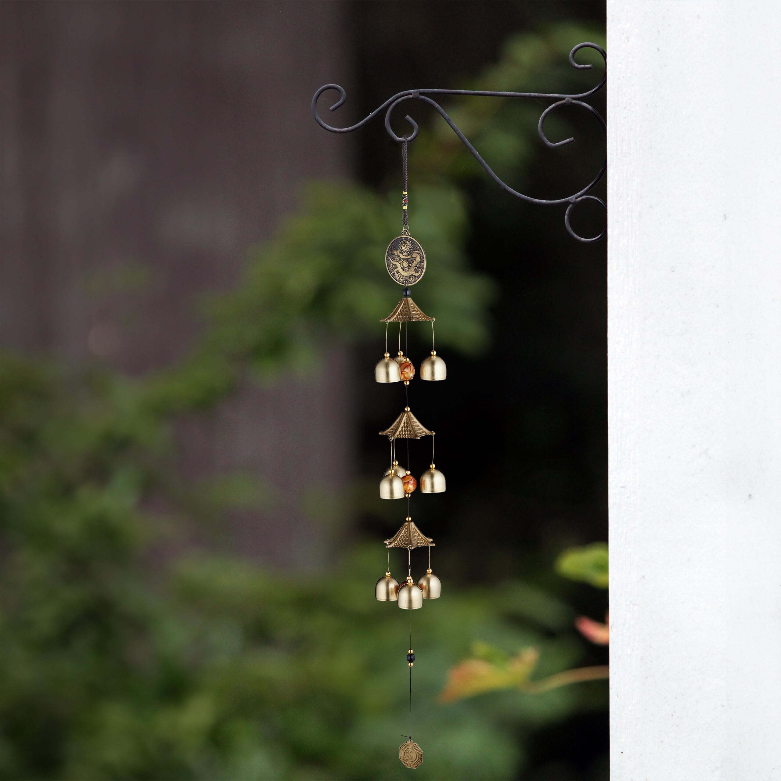 Entspannung pur mit diesen stylischen Windspielen! Das 2er-Set im Feng-Shui-Design bringt harmonische Klänge in deinen Garten oder Wohnbereich. Jedes Windspiel hat niedliche Elefanten-Motive in Gold/Schwarz und misst ca. 45,5 cm in der Höhe. Einfach an der praktischen Aufhängeschlaufe befestigen und schon verwandelst du Balkon, Terrasse oder Wohnzimmer in eine Wohlfühloase. Die Metallplättchen erzeugen bei jedem Lüftchen beruhigende Töne, die echt entspannend wirken. Material: Robustes Eisen mit Kunststoff-Akzenten. Ideal als Geschenk oder für die eigene Deko-Sammlung! Wichtig: Die Windspiele haben einen Schutzfilm, sollten aber nicht dauerhaft extremer Witterung ausgesetzt werden. Jedes Windspiel wiegt nur 50 g - super leicht! Lieferumfang: 2x Windspiel ohne weitere Deko-Artikel. Perfekt für Einsteiger in Feng Shui oder als Geschenk zur HausEinweihung!