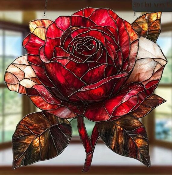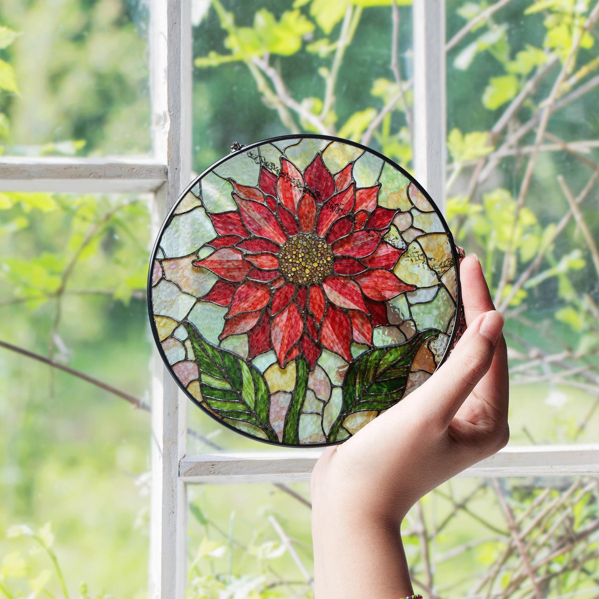 Große Rote Blume Acryl Fensterbehang - Buntglas Sonnenfänger 20cm Durchmesser